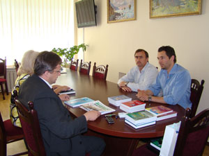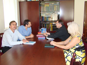 Ректор КУП НАНУ Ю. Бошицький ознайомив гостя з університетом, його структурними підрозділами та кафедрами, навчально-науковою бібліотекою. Також ректор презентував останні наукові видання і обговорив з гостем можливі шляхи співпраці. Обговорювались питання впровадження сумісних освітніх проектів, здійснення наукових досліджень у сфері права інтелектуальної власності на базі Київського університету права НАН України спільно з науковцями Сегедського університету, проведення сумісних семінарів і круглих столів, створення умов для розвитку викладацького складу, залучення провідних угорських науковців до майстер – класів для студентів нашого університету.