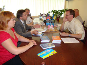 Ректор КУП НАНУ Ю. Бошицький ознайомив гостей з університетом, його структурними підрозділами та кафедрами, навчально-науковою бібліотекою. Також ректор презентував останні наукові видання і обговорив з гостем можливі шляхи співпраці. Обговорювались питання впровадження сумісних освітніх проектів, здійснення наукових досліджень у сфері конституційного права, політології на базі Київського університету права НАН України спільно з науковцями Інституту КЕННАНА, проведення сумісних семінарів і круглих столів, залучення провідних американських науковців до майстер – класів для студентів нашого університету.
