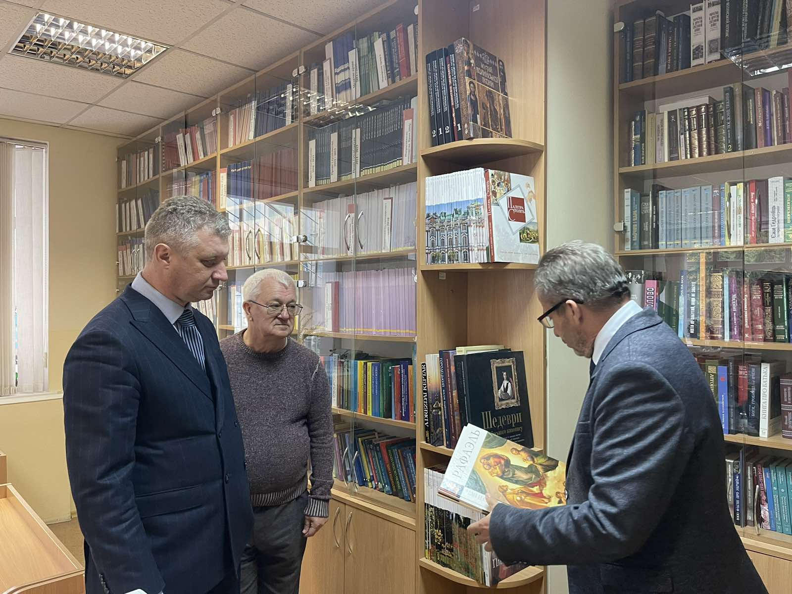 Зі свого боку ректор Юрій Бошицький провів екскурсію університетом, приділивши особливу увагу музеям КУП, бібліотеці та навчальним аудиторіям Київського університету права НАН України.