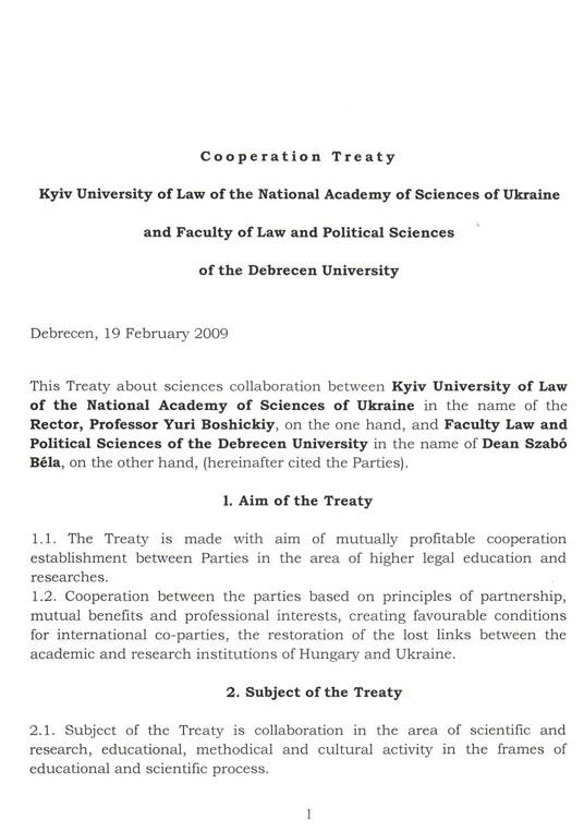 20 лютого ректор, професор Ю. Бошицький відвідав з офіційним візитом факультет права та політичних наук Дебреценського університету. Під час візиту відбулось урочисте підписання угоди про співпрацю між сторонами.