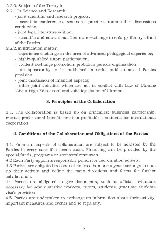 А саме, угода між двома сторонами передбачає співпрацю у наукових та освітніх напрямах. Зокрема основними напрямками спільної діяльності було визначено: