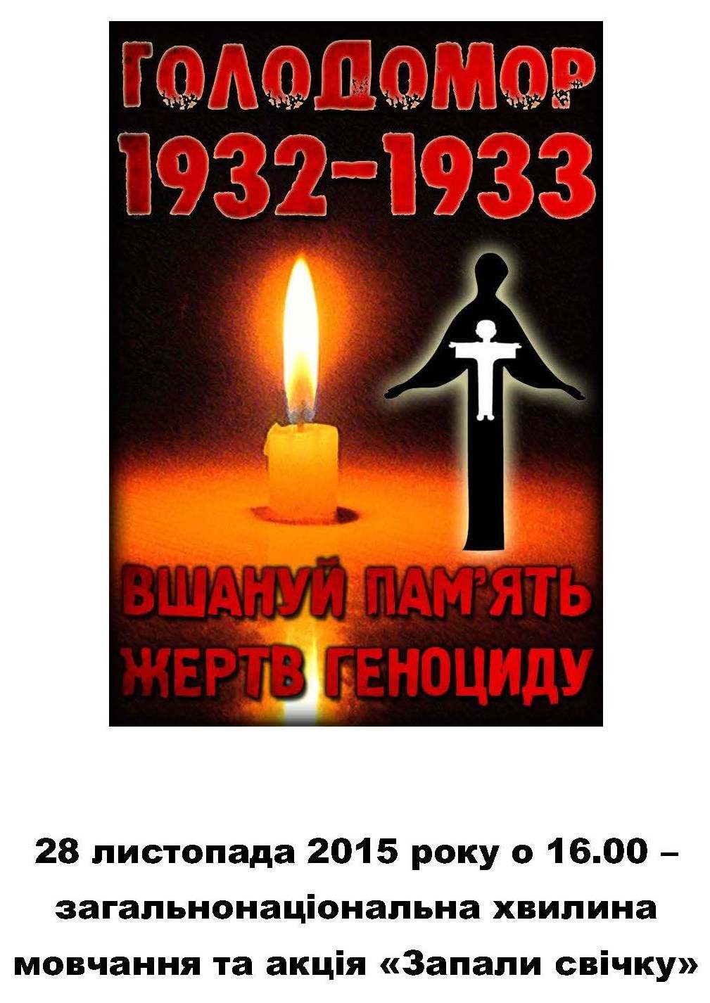 28 листопада 2015 року о 16.00 – загальнонаціональна хвилина мовчання та акція «Запали свічку»