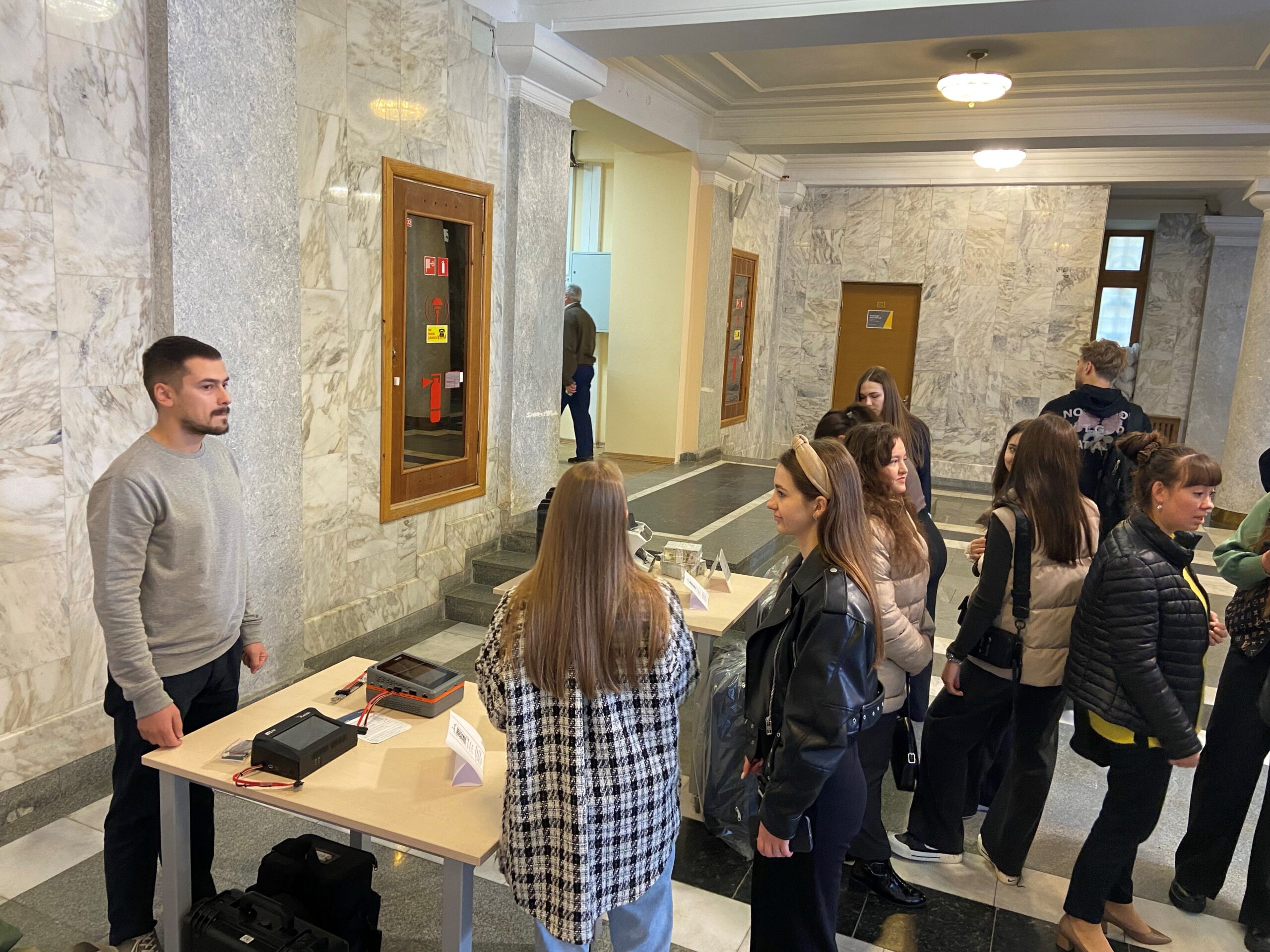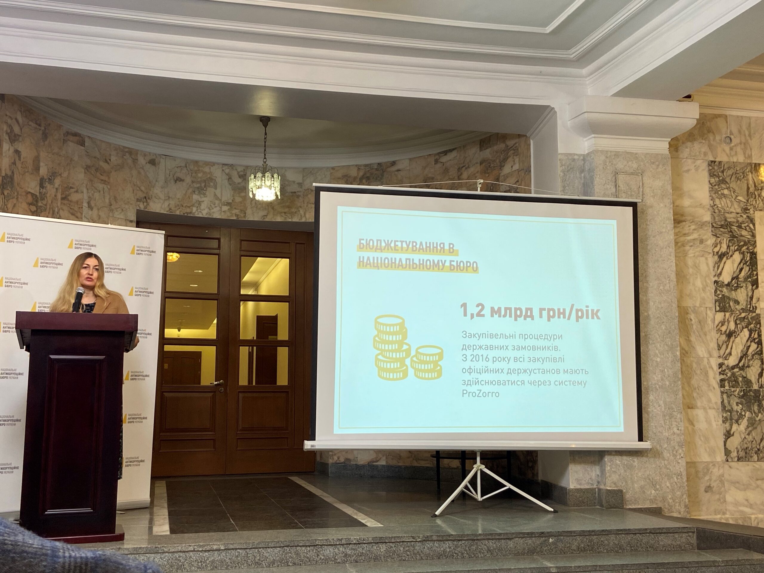Варварська Тетяна Володимирівна, заступник директора НАБУ, розповіла відвідувачам про матеріально-технічне забезпечення НАБУ, таким чином підсумувавши те, що частково змогли побачити на свої очі відвідувачі під час екскурсії.