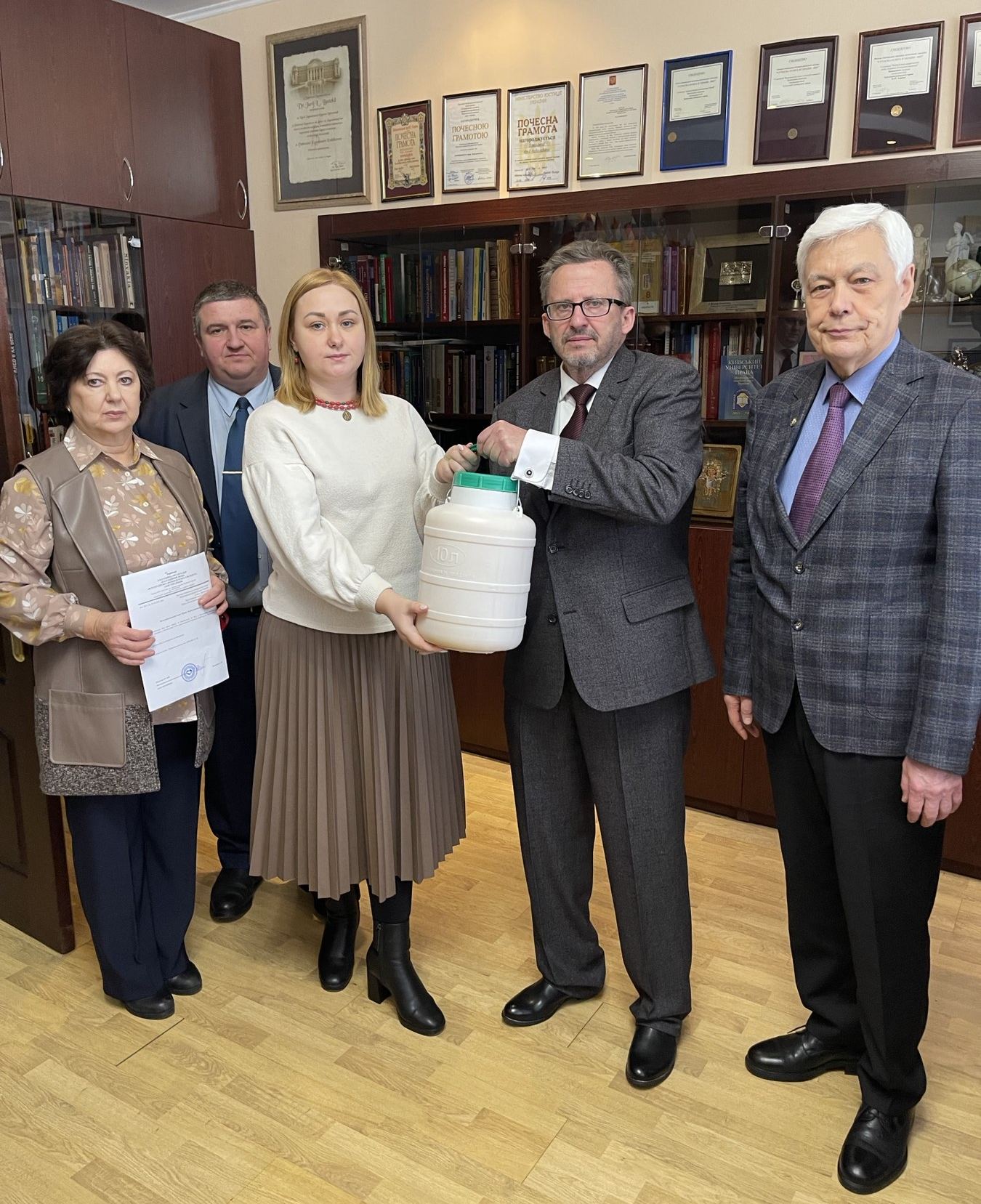 Натомість ректор Київського університету права Національної академії наук України Юрій Бошицький наголосив на тому, що університет на постійній основі активно займається благодійницькою діяльністю та вагомою підтримкою ЗСУ і на дієве підтвердження своїх слів подарував від університету бідон меду та інші «цікаві високотехнологічні подарунки» для військовослужбовців, які знаходяться на передовій лінії оборони.