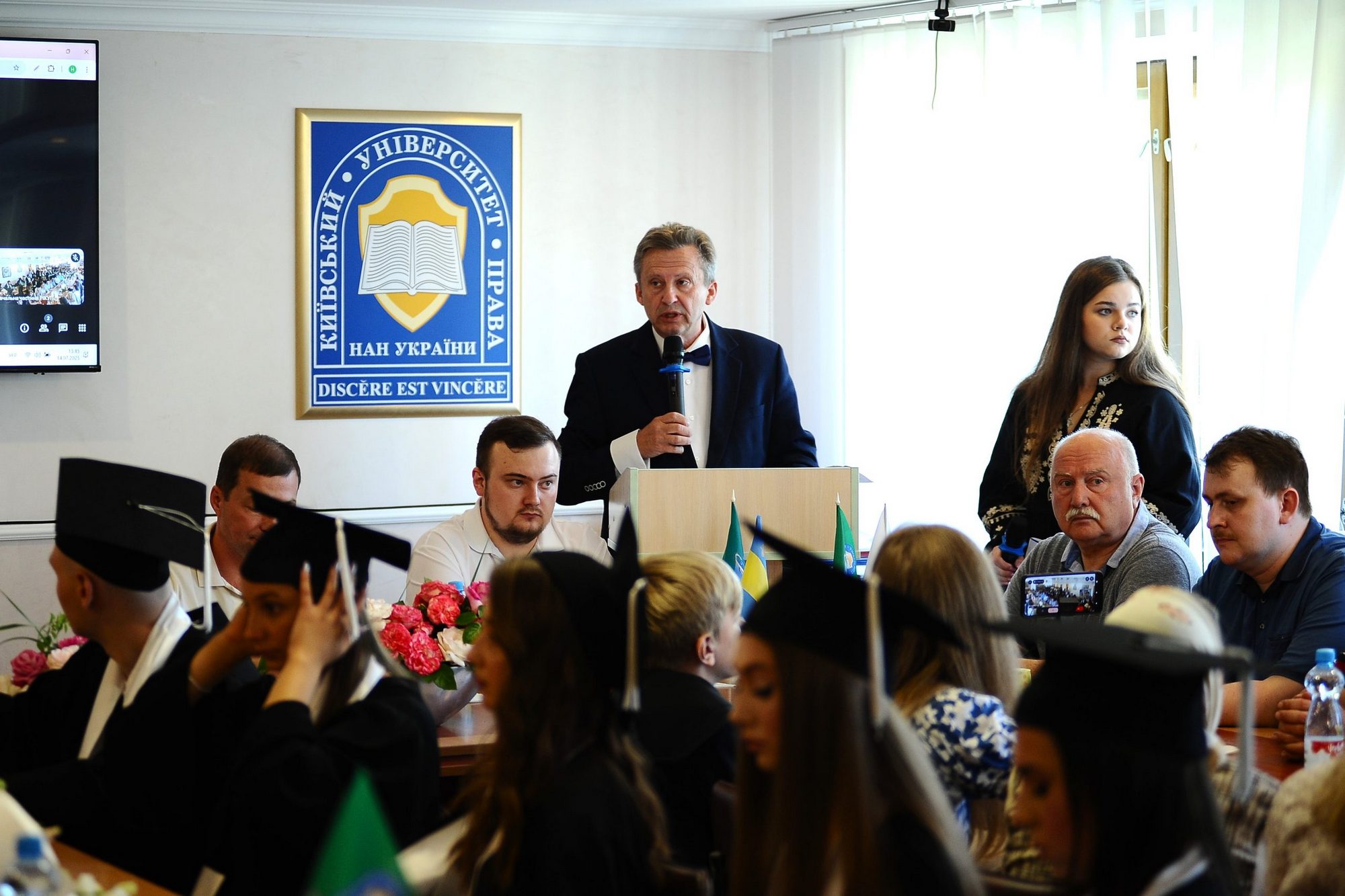 Особливою честю для учасників урочистостей стало вітальне слово Президента Національної академії наук України академіка Анатолія Загороднього, яке зачитав ректор КУП НАН України професор Юрій Бошицький. У зверненні до випускників очільник Академії наук підкреслив, що Київський університет права є унікальним закладом в системі НАН України, який вже 30 років відіграє провідну роль у формуванні фахової правової спільноти. Президент НАН України побажав молодим правникам високих професійних досягнень, віри у себе та відповідального служіння державі й суспільству.