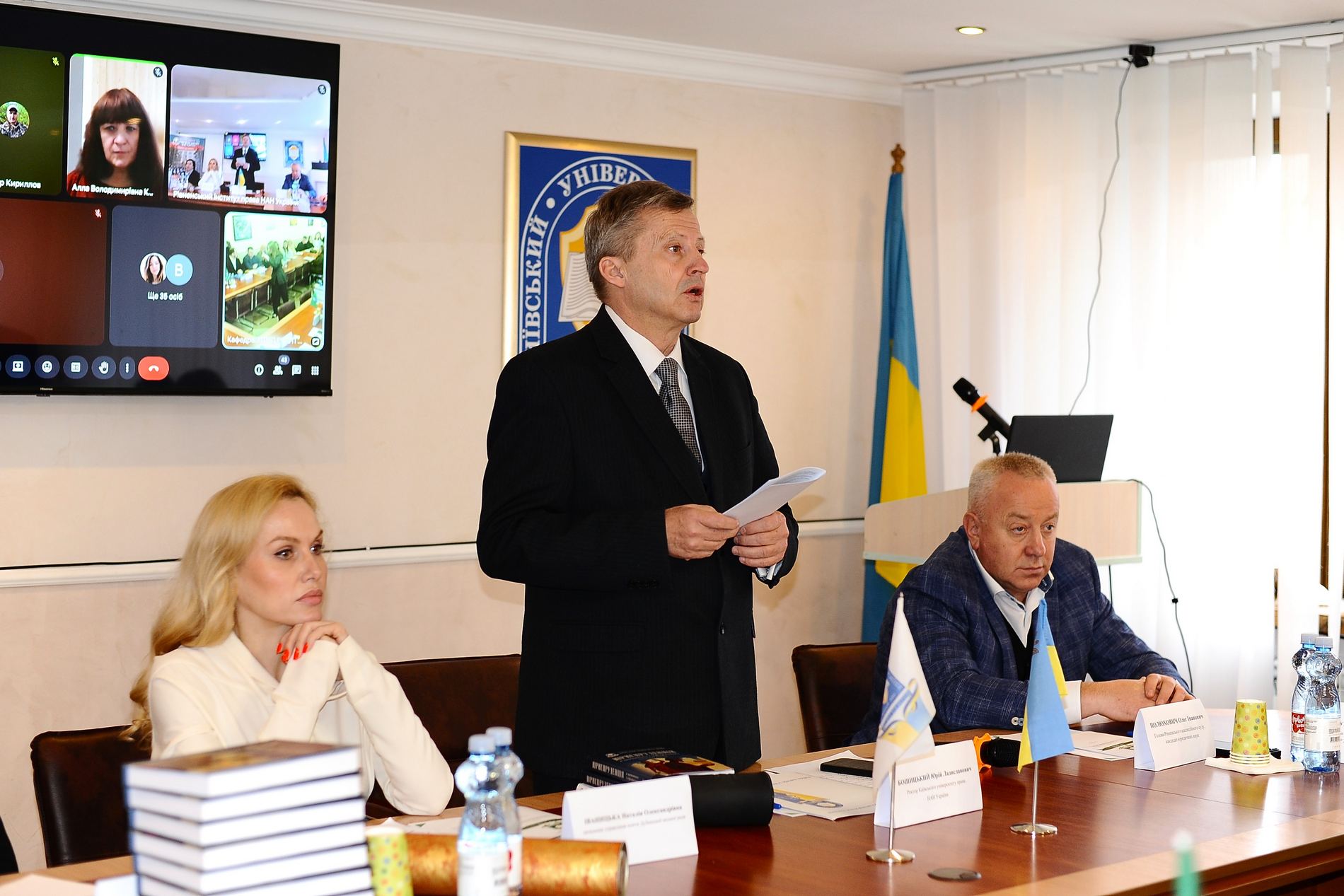 Ректор КУП НАНУ професор Юрій Бошицький урочисто відкрив конференцію й виголосив вітальне слово, у якому підкреслив важливість гуманітарного виміру для розвитку сучасної правової науки. У своїй науковій доповіді він окреслив стратегічні напрями інтеграції правничих досліджень із гуманітаристикою, наголосивши на необхідності осмислення правових процесів крізь призму соціальних, культурних та цивілізаційних змін.
