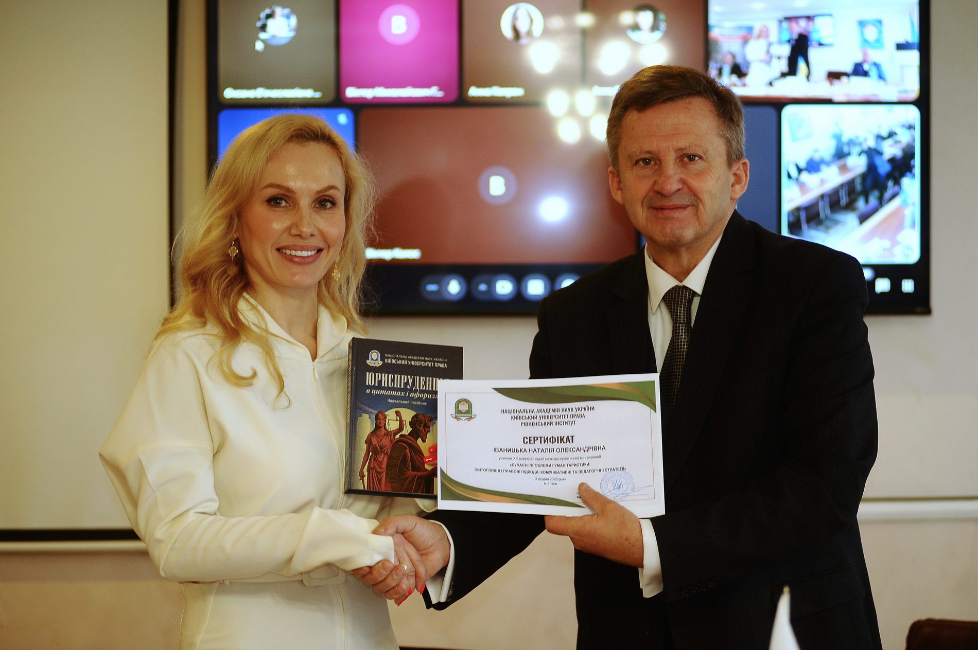 У рамках пленарної частини ректор КУП НАНУ презентував університетське науково-практичне видання — навчальний посібник «Юриспруденція в цитатах і афоризмах». Почесні гості отримали примірники видання з дарчим підписом ректора, що стало символічним жестом академічної співпраці та взаємної підтримки.