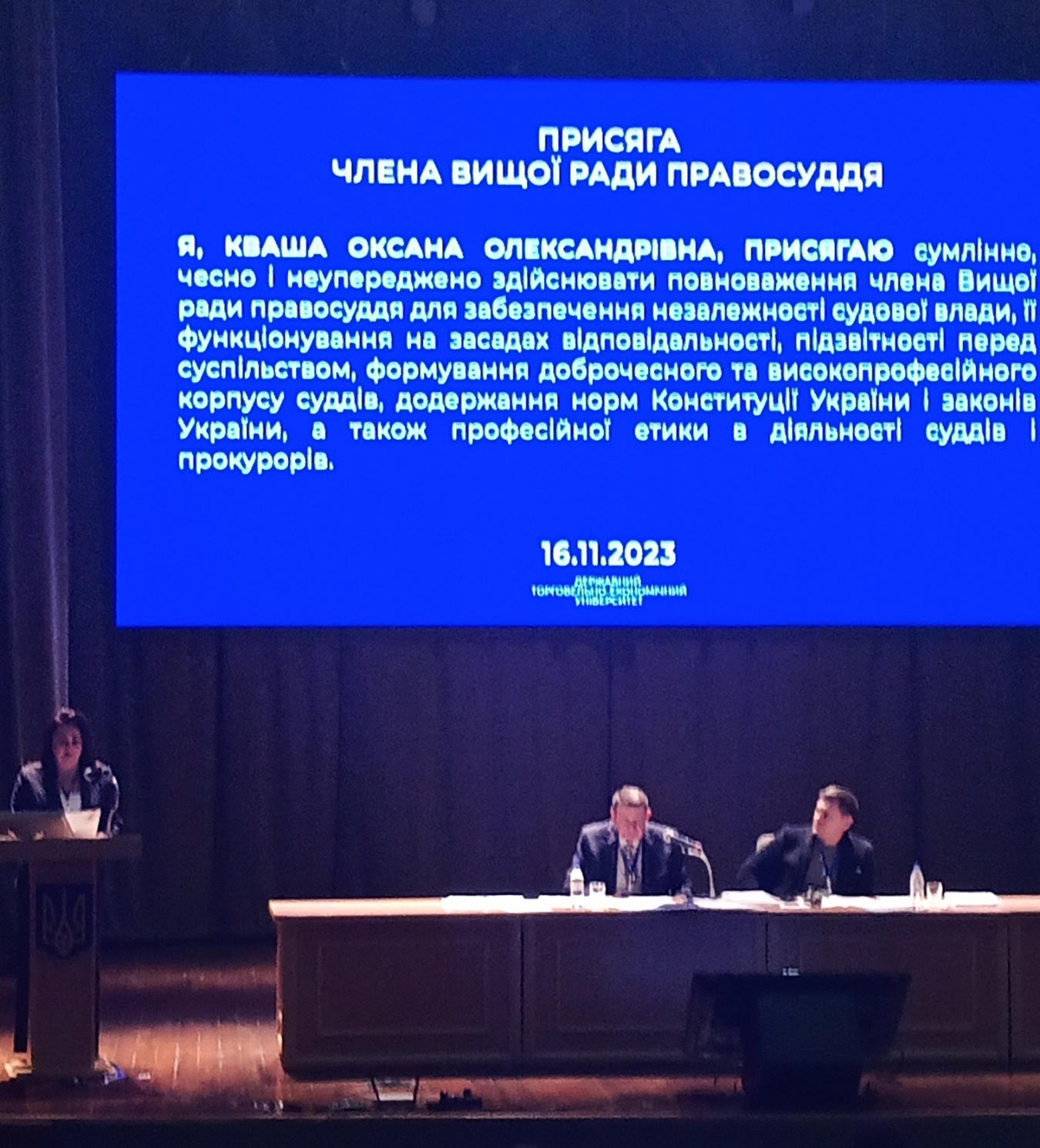 За результатами роботи членкинею Вищої ради правосуддя З’їздом представників юридичних вищих навчальних закладів та наукових установ була обрана гідна кандидатка – Кваша Оксана Олександрівна – учений секретар Інституту держави і права імені В.М. Корецького НАН України, доктор юридичних наук (кримінальне право та кримінологія; кримінально-виконавче право), професор, заслужений юрист України.