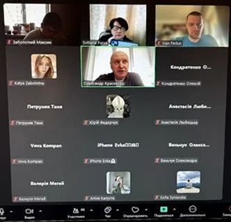 Практикуючий приватний нотаріус, доктор філософії в галузі права Красногор О.В. розповів студентами з якими проблемами стикаються українські нотаріуси при посвідченні довіреностей, заяв, особистих розпоряджень, заповітів громадян в умовах воєнного стану та звернув увагу на особливості вчинення цих нотаріальних дій. Висвітлив питання нотаріального посвідчення афідевітів (урочистих заяв) для дії закордоном та відповідність їх нормам законодавства країни, де вони будуть використовуватися. Проаналізував цікаві випадки із нотаріальної практики, зокрема, про посвідчення військовослужбовцем заповіту із заповідальним розпорядженням на випадок його смерті та висвітлив процедуру зміни чи скасування заповітів та інші важливі аспекти діяльності нотаріусів під час воєнного стану. Навів випадки звернення громадян України, які знаходяться за кордоном до консулів за посвідченням довіреностей, заяв, які необхідні для вчинення певних правочинів уповноваженими особами на території України. Підкреслив, що нотаріуси є фахівцями високого ґатунку, але під час воєнного стану особливо їм потребуються знання іноземної мови, законодавства інших країн та міжнародного права, тому студенти, які хочуть у майбутньому стати нотаріусами вже із студентської лави мають оволодівати такими знаннями.
