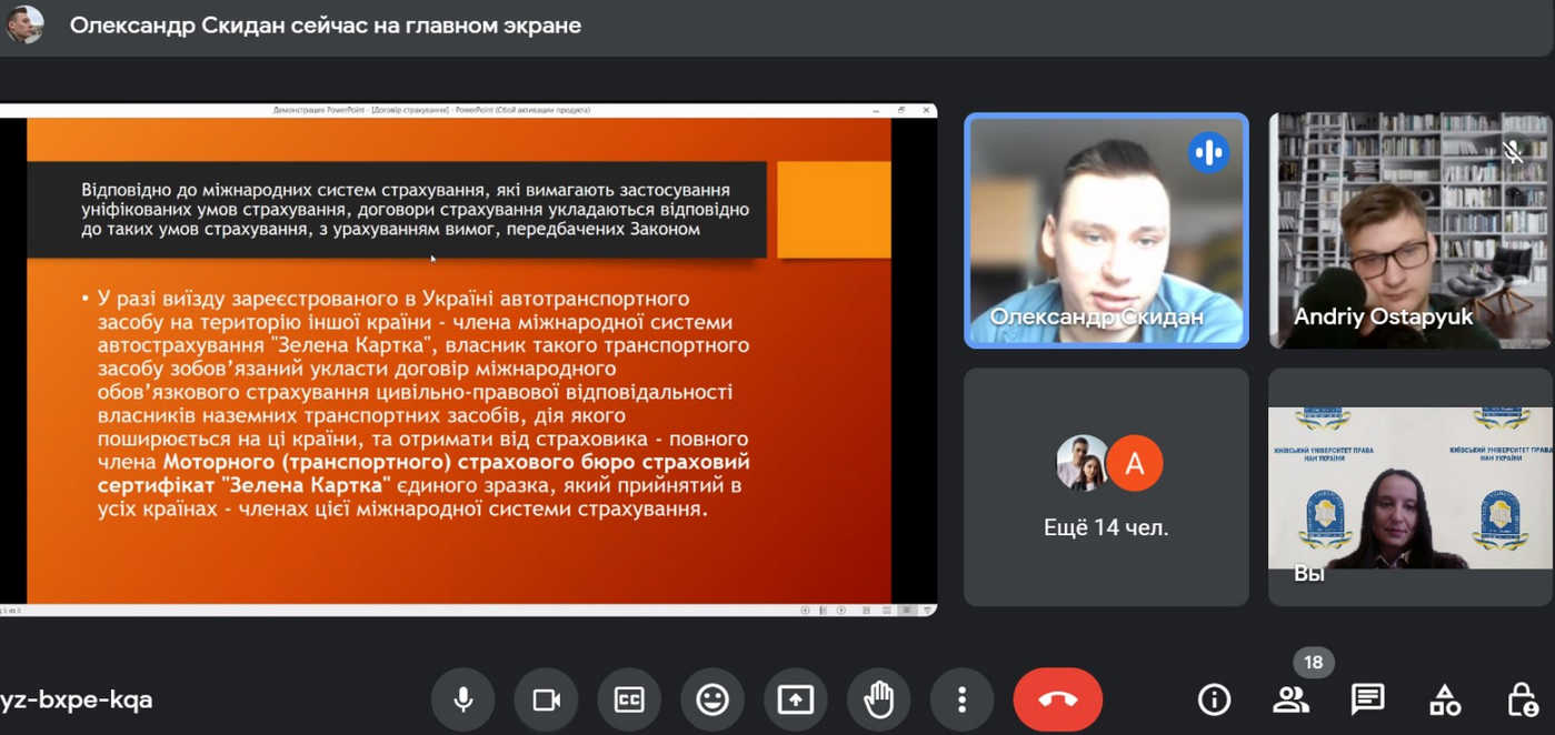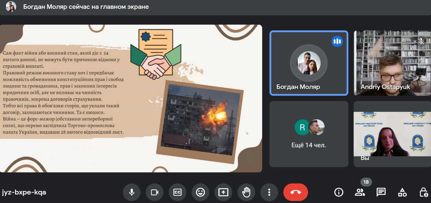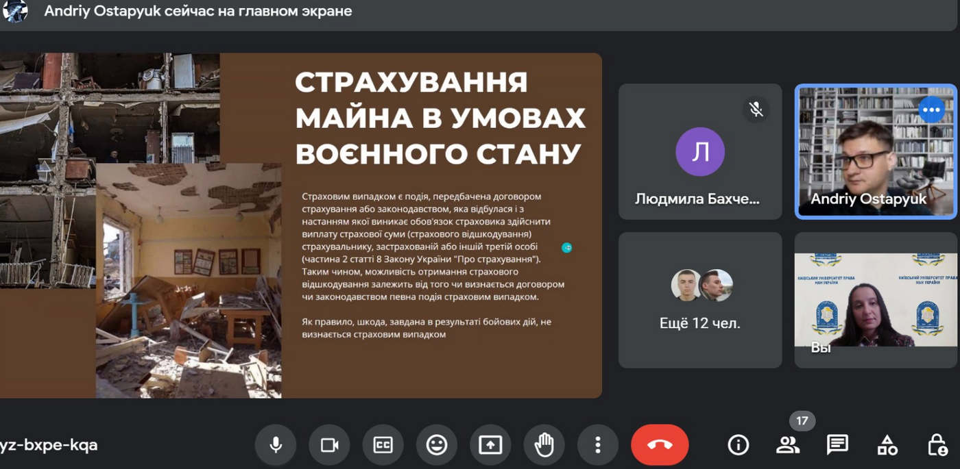 Серед тем доповідей круглого столу: особливості страхування нерухомості в умовах війни, аналіз сфери страхування, проблеми виконання договорів страхування під час воєнного стану, проблеми страхування життя, шахрайство у сфері страхування тощо.