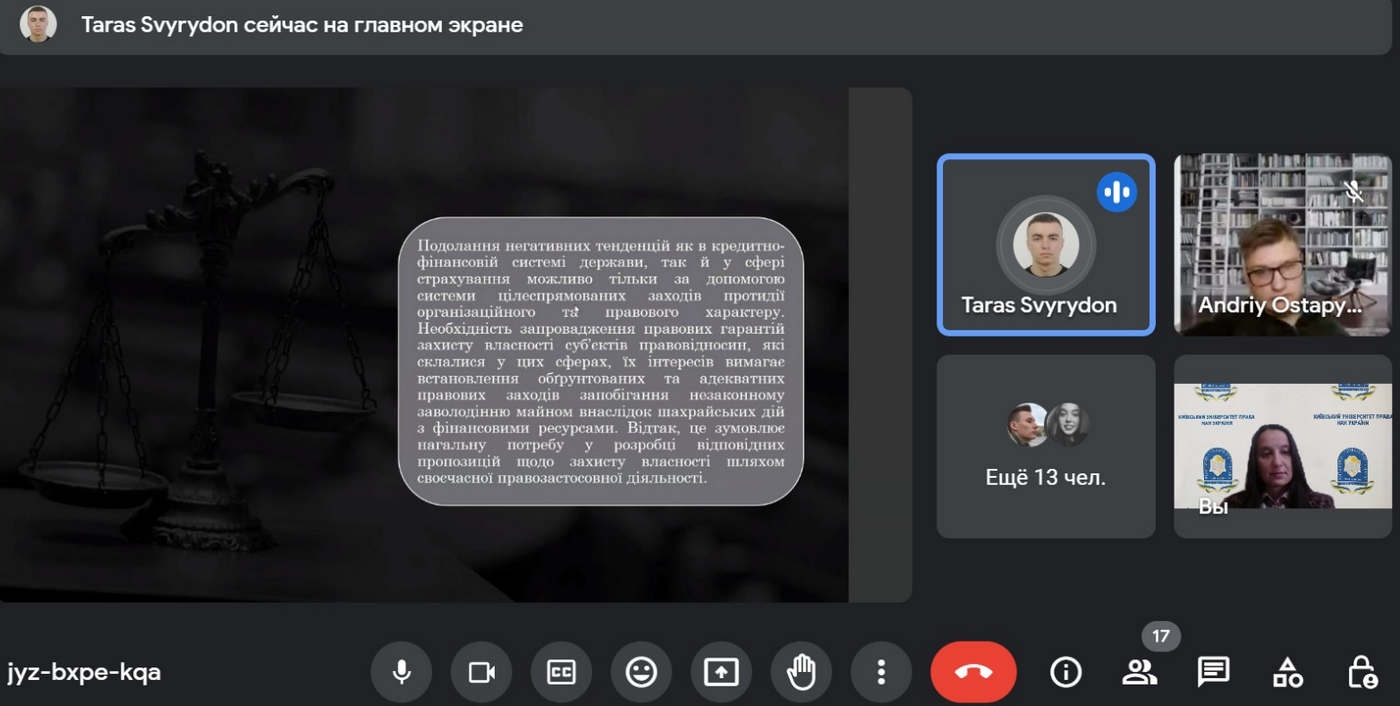 Круглий стіл організовано в рамках роботи гуртка з цивільного права, у якому взяли участь здобувачі вищої освіти спеціальності 081 «Право», які підготували змістовні доповіді з презентаціями, серед яких Пацалюк Ангеліна, Моляр Богдан, Остап’юк Андрій, Бахчеджи Людмила, Скидан Олександр, Свиридон Тарас та інші.