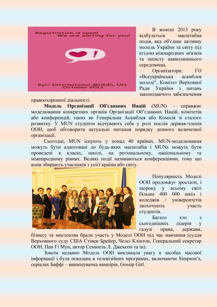 До уваги студентів КУП НАНУ! Розпочато реєстрацію делегатів в V Київській моделі Організації Об’єднаних Націй!