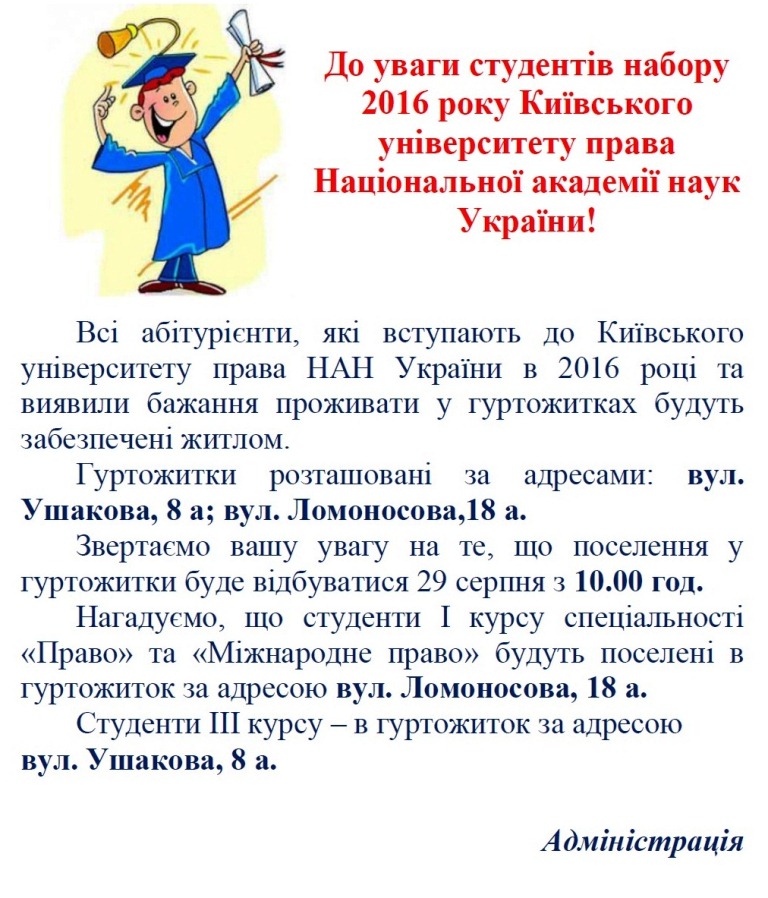 До уваги студентів набору 2016 року Київського університету права Національної академії наук України!