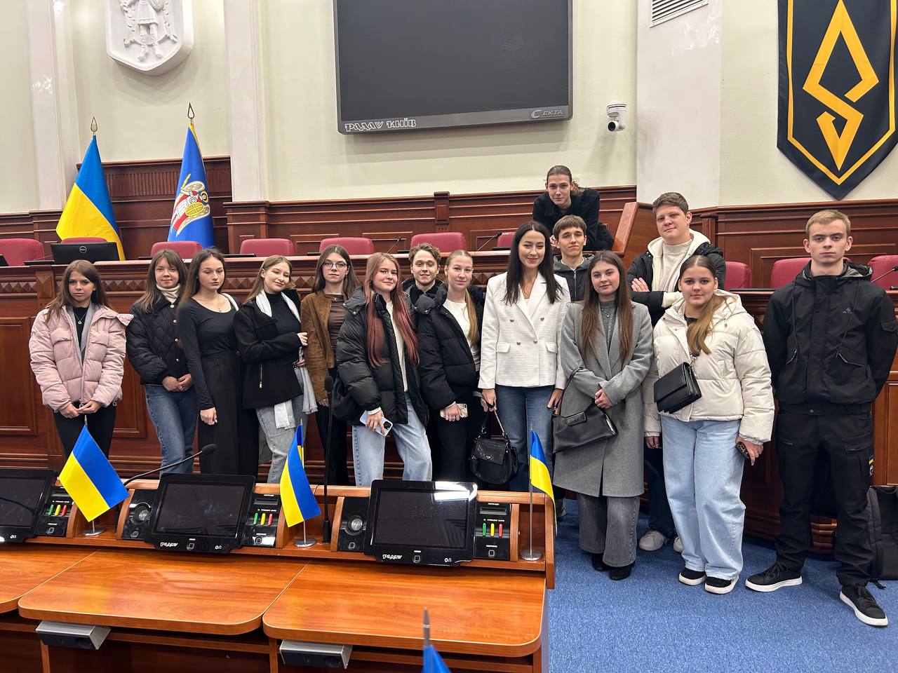 Під час екскурсії студенти мали унікальну можливість ознайомитися з роботою органів місцевого самоврядування, побачити зсередини, як функціонують структурні підрозділи КМДА, а також дізнатися більше про основні напрями діяльності міської влади.