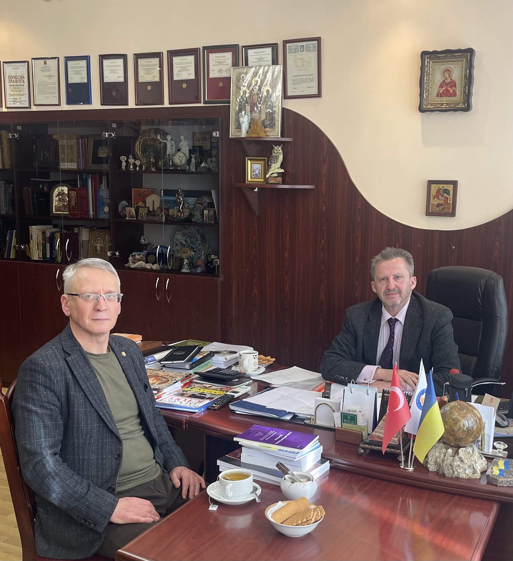 На завершення зустрічі ректор Юрій Бошицький познайомив гостя з основними здобутками КУП НАН та презентував подарунки з символікою університету.