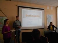 У рамках Тижня іноземних мов 16 березня 2015 року кафедра іноземних мов КУП НАН України провела круглий стіл на тему «Евтаназія: правові та етичні аспекти». Керівником заходу була Гетман В. І. (старший викладач кафедри іноземних мов). Студенти групи МП-21 підготували презентації та показали достатній рівень знань по темі. Вони врахували як і правові аспекти питання евтаназії, так і етичні. Щодо презентацій, то студенти розкрили історичний аспект даного питання.
