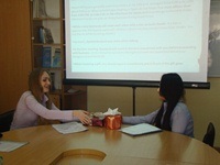 Метою рольової гри було продемонструвати набуті студентами знання, вміння та навички під час вивчення цієї теми в рамках курсу ділової англійської мови. Така рольова гра надала змогу студентам відчути себе в ситуації ділового спілкування з представниками інших країн, використовуючи знання про особливості їх бізнес-культури, а саме – особливості вітання, ведення розмови, вручення подарунків, запрошення до ресторану чи до ознайомлення з цікавими культурно-історичними місцями, знайомство з партнерською компанією чи висловлення поваги та ін. Так, студенти Величко Касім, Чебанов Євген, Мацьків Квітослава, Трофімова Аліна, Сергієнко Євген, Слободян Інна, Скорик Анастасія та Нерсісян Лілія відтворили ділові переговори в парах, що складалися з «представників» таких країн, як Об’єднані Арабські Емірати, Молдова, Іспанія, США, Італія, Вірменія, Росія та Японія. Вони продемонстрували як навички підготовленого та непідготовленого говоріння англійською мовою, так і знання особливостей бізнес-культур країн, які вони представляли.
