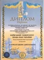 Лауреатом Міжнародної академії рейтингових технологій і соціології «Золота Фортуна» став і Київський університет права НАН України, який на заході представляв ректор університету, професор Ю.Л. Бошицький.