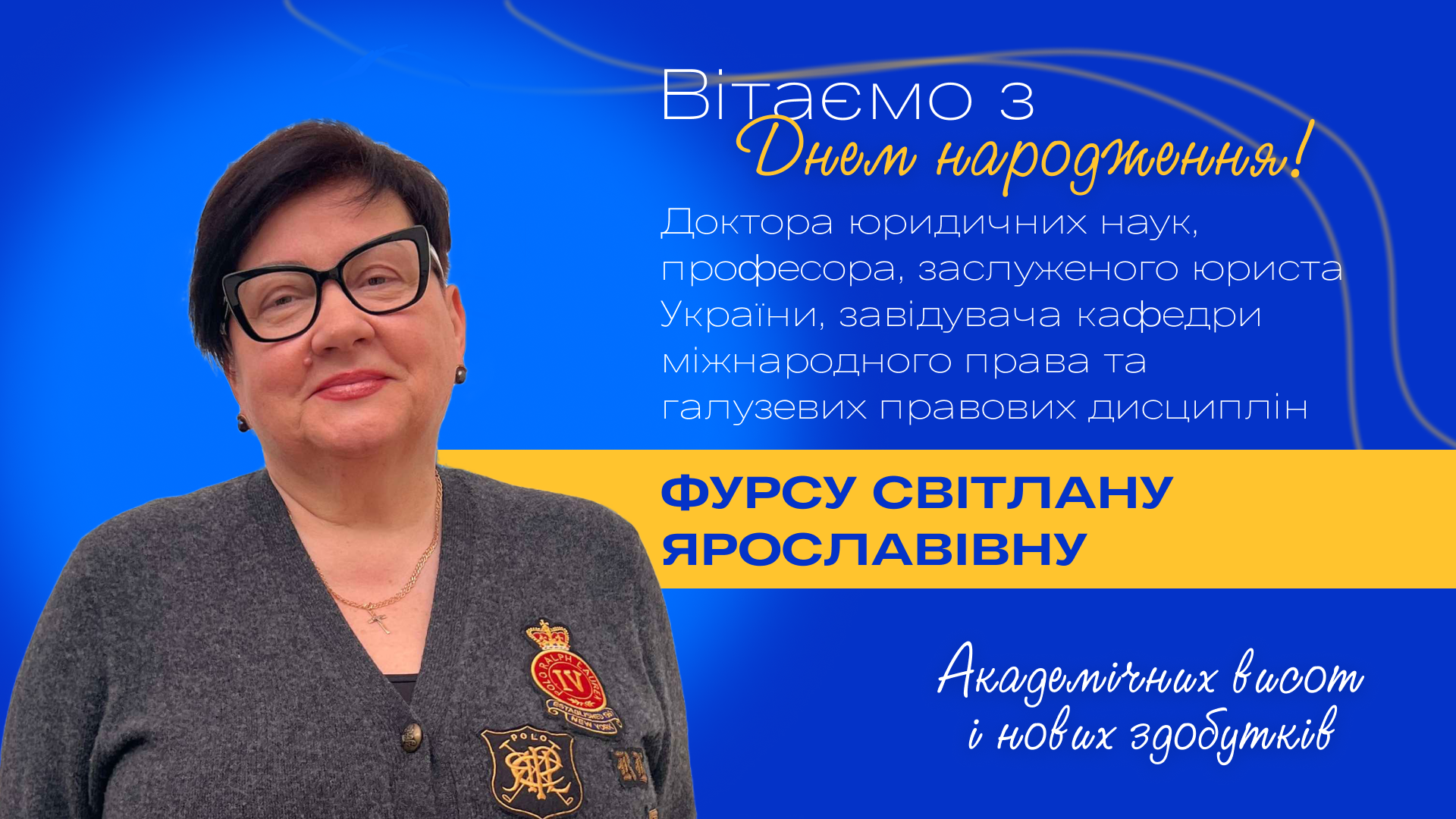 Колектив університету вітає з Днем народження доктора юридичних наук, професора, заслуженого юриста України, завідувача кафедри міжнародного права та галузевих правових дисциплін Фурсу Світлану Ярославівну