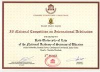 На завершення варто зазначити, що в рамках Фіналу ІІ Національного конкурсу з міжнародного арбітражу відбулася офіційна презентація студентського комітету “Arbitrage Young People” – молодіжного крила Європейської арбітражної палати, яке на сьогоднішній день вже об’єднує понад 200 студентів з різних країн Європи і світу. У своїй доповіді голова комітету Георгій Пампуха окреслив головні цілі і завдання «Arbitrage Young People, а саме – організація студентських освітніх проектів у сфері міжнародного комерційного арбітражу та медіації для молоді, яка зацікавлена у своєму науковому та особистісному розвитку.