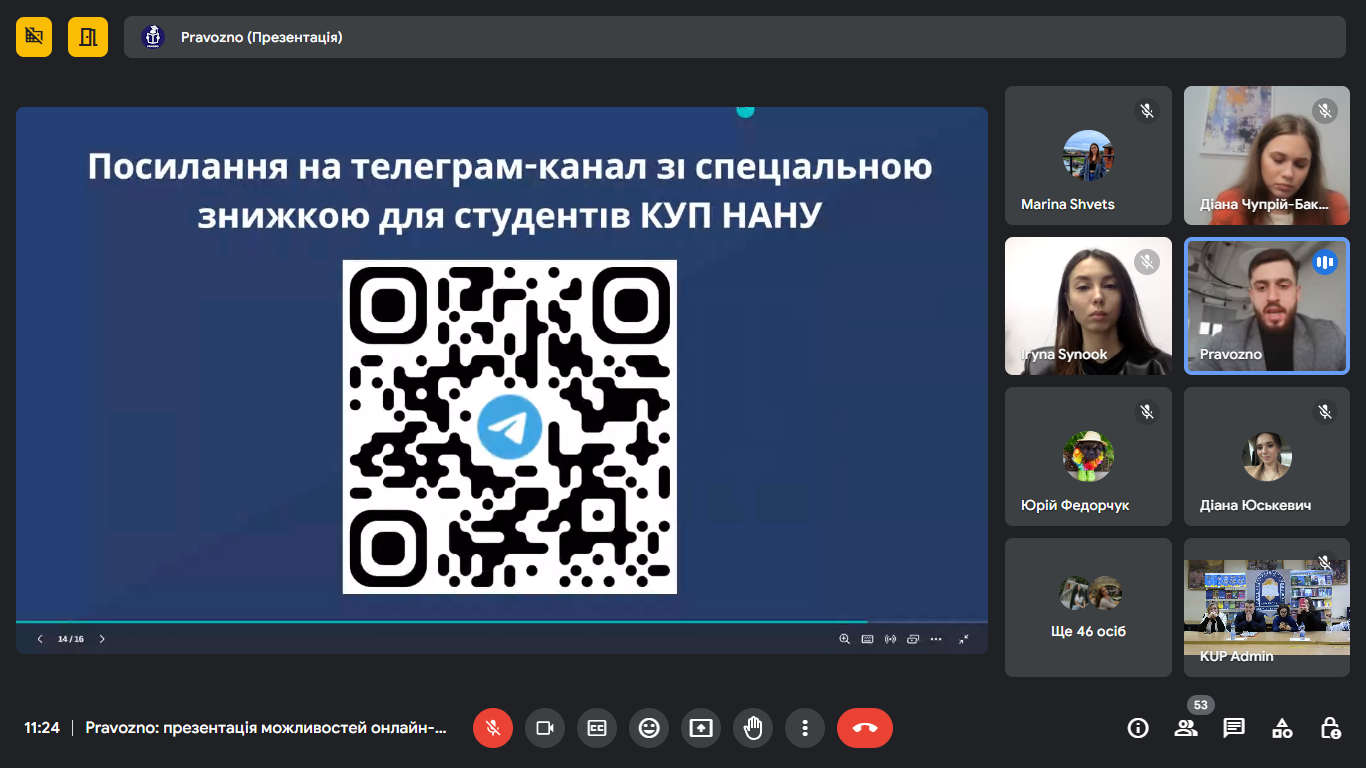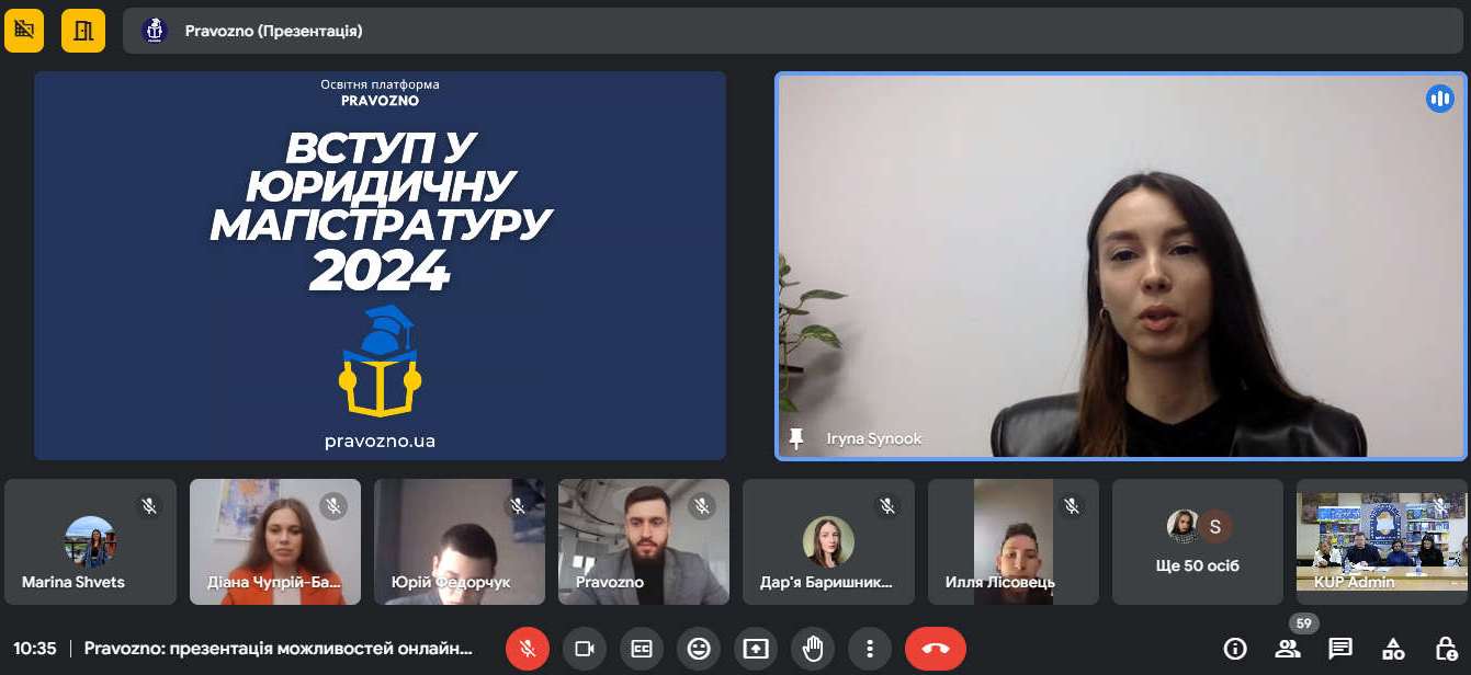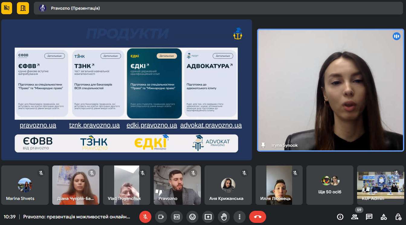 Команда освітньої платформи Pravozno презентувала можливості онлайн-підготовки до ЄФВВ та ТЗНК для студентів КУП НАН України