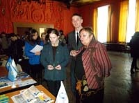 Борисюк Тетяна, студентка ІV курсу відділення міжнародного права, Головчук Віталій, студент ІV курсу, Берлінова Тетяна, студентка ІІІ курсу, Гаврилюк Володимир, студент ІV курсу під час проведення бесід з відвідувачами виставки відповіли на питання присутніх щодо ролі студентського самоврядування в житті студентів вишу та продемонстрували презентаційні ролики студентського життя.