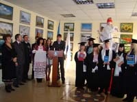 Представники студентського самоврядування подарували рідному Університету вишитий рушник з ініціалами та побажаннями подальшого процвітання. Творча молодь Університету зробила подарунок у вигляді живої скульптури Феміди на захисті якої стояли студенти в мантіях з різноманітними кодексами України у руках,як символ захисту права в Україні.
