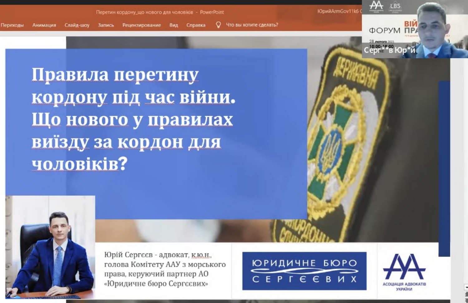 Форум «ВІЙНА ТА ПРАВО» став платформою, яка дала можливість представникам влади, бізнесу, освіти та науки обговорити проблемні питання різних галузей права під час воєнного стану в Україні. Зокрема на Форумі піднімалися дискусії щодо адаптації до стрімкої динамічності змін норм чинного законодавства в умовах війни; новацій в правовому регулюванні соціальної, економічної, управлінської та військової сфер; питання військового права та правового регулювання воєнного стану; особливості дискреційних повноважень органів влади в умовах війни; особливості військового обліку; питання благодійної та волонтерської діяльність; соціальні проблеми під час воєнного стану та шляхи їх вирішення; захист трудових прав під час війни. Окрему секцію було присвячено проблемам економіки країни під час воєнного стану, оподаткуванню та здійсненню ЗЕД в умовах воєнного стану.