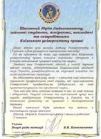 Здобутки Київського університету права НАН України пов’язані з наполегливою та копіткою працею ректорату, професорсько-викладацького складу, адміністративно-господарчого персоналу, всього колективу навчального закладу. Ми переконані: пройде п’ятдесят, сто років, а Київський університет права НАН України залишатиметься лідером серед вищих юридичних навчальних закладів не лише України, а і світу.