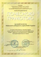 Колективові надзвичайно приємно було отримати Почесну грамоту Президії НАН України за творчі здобутки, впровадження у навчальний процес інноваційних технологій та підготовку висококваліфікованих кадрів у галузі вищої юридичної освіти.