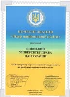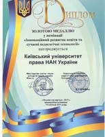 Результати діяльності університету були високо оцінені і цьогорічним журі виставки. Київський університет права було нагороджено: