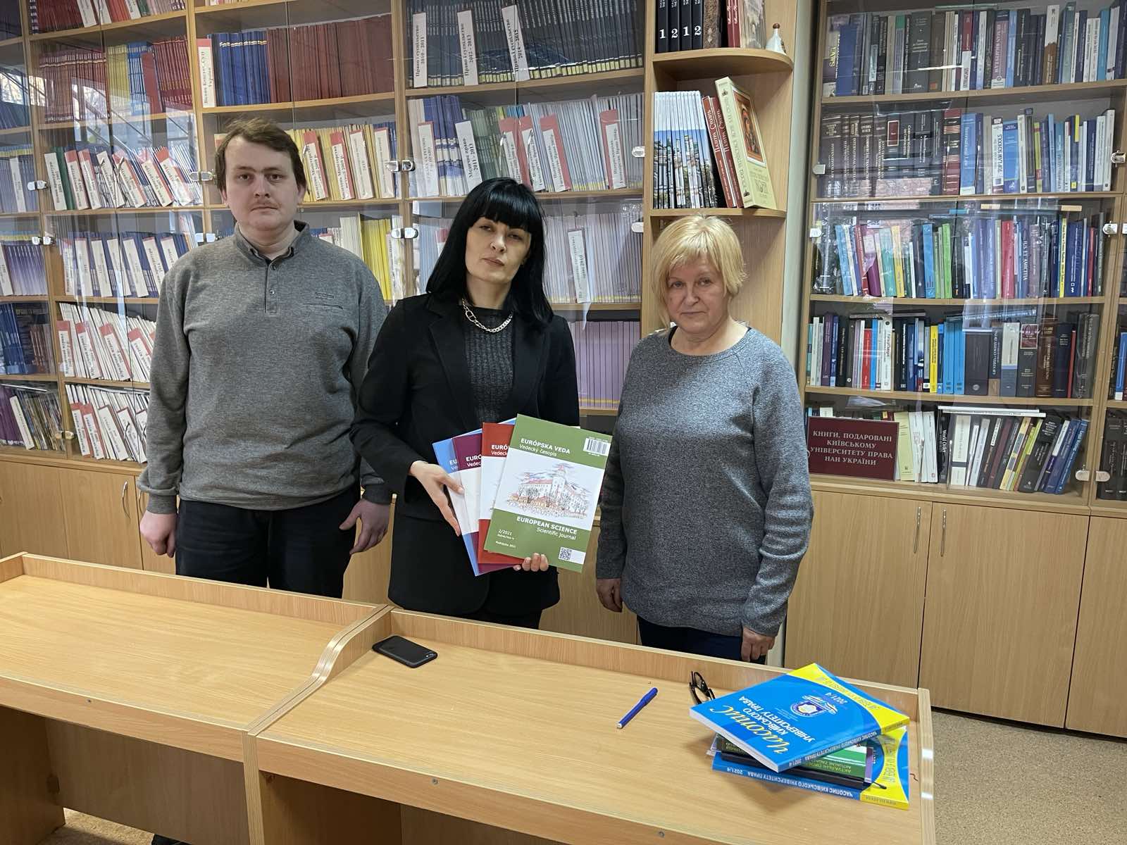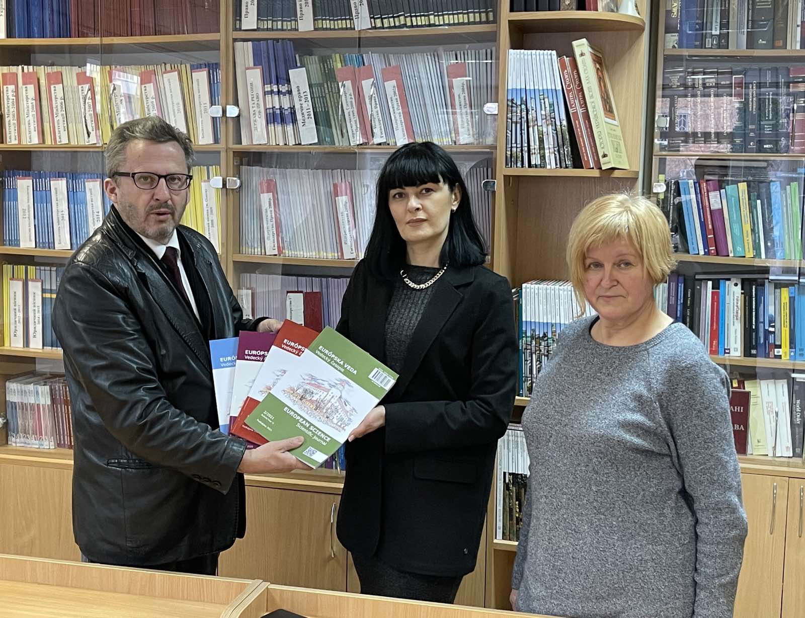 З книжковими подарунками завітала до Київського університету права представниця Президента Європейського інституту додаткової освіти професора Йозефа Зятько (Словаччина), директорка Науково-технічної бібліотеки Київського національного університету технології та дизайну, Тетяна Олександрівна Букорос.