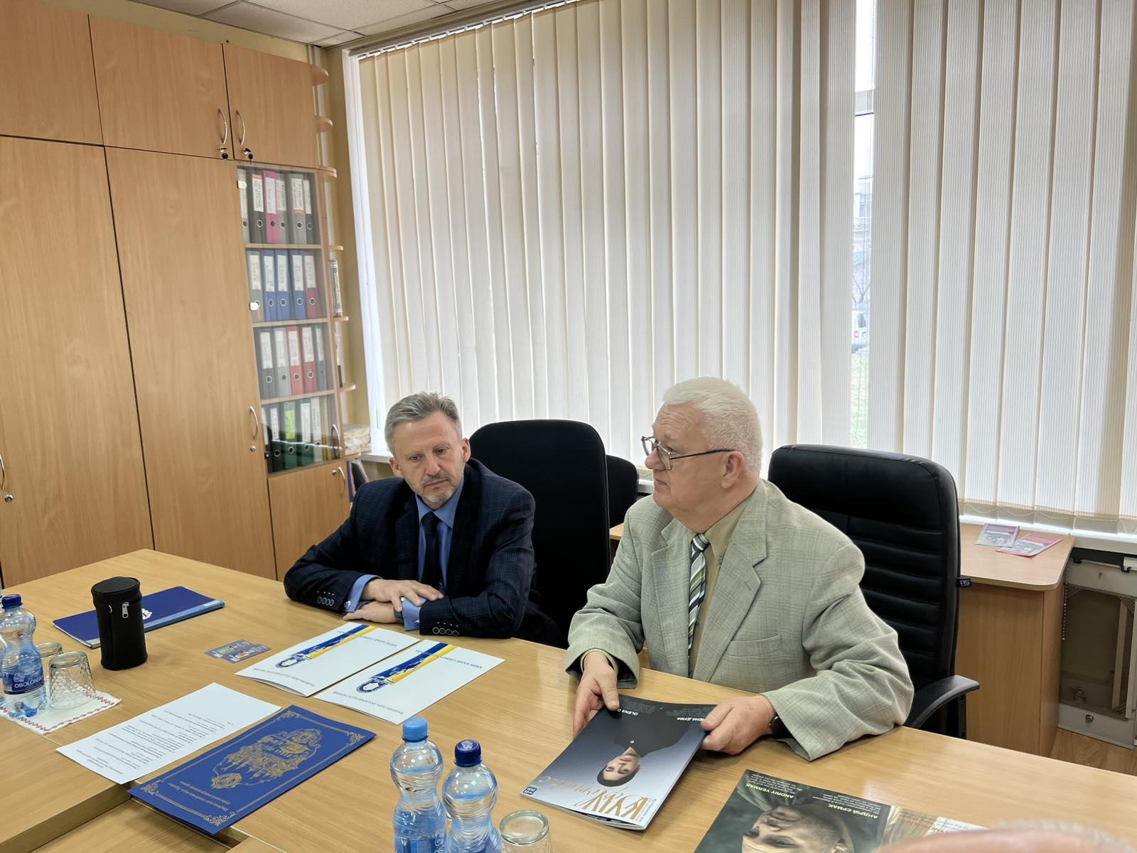На запрошення ректора КУП НАН України професора Юрія Бошицького на засіданні ректорату були присутні почесні гості та давні партнери нашого університету ‒ засновник та шеф-редактор часопису «Київ дипломатичний» Олександр Кондратенко та головна редакторка зазначеного часопису Антоніна Лінник.