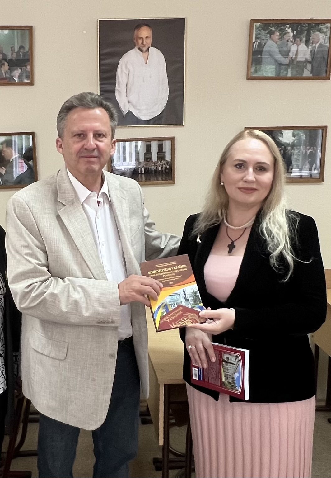 27.06.2025 року, напередодні Дня Конституції України, до Київського університету права НАН України завітала адвокат Катерина Кармазіна – донька Почесного доктора нашого Університету Юрія Кармазіна. Ректор, професор Юрій Бошицький та колектив КУП НАНУ привітали гостю та разом відвідали створений в Університеті музей, присвячений українському юристу, політичному діячу, Народному депутату України 2-го, 3-го, 4-го, 6-го скликання, державному раднику юстиції 3-го класу, Гетьману козацтва всієї України – Юрію Кармазіну. Він був відомою масштабною особистістю, українцем з великим і добрим серцем, відкритим для людей та сповненим жаги до життя. Завжди відрізнявся аналітичним складом мислення, спираючись на передові форми та методи праці з питань дотримання законності та боротьби з корупцією. Був одним з авторів Конституції України. Упродовж багатьох років у самих непростих ситуаціях Юрій Анатолійович боровся за Правду та Справедливість, часто захищаючи їх ціною власного здоров’я, а то й життя. Його неординарність, прямота, професійність у поєднанні з високою політичною культурою та інтелігентністю викликали захоплення у багатьох і водночас декого дратували, але виходу у опонентів після аргументації Кармазіна не було – доводилось вчиняти по Закону, основним з яких для нього завжди була Конституція України.
