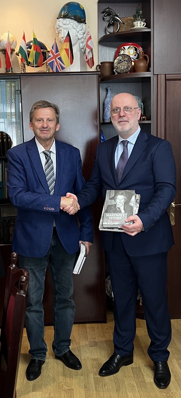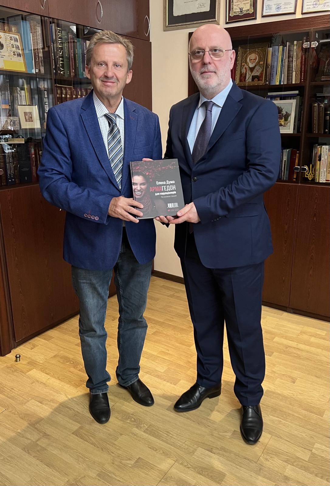 Пан Посол передав для вивчення студентам КУП НАН України монографію з аналізом діяльності Національної поліції України, а також монографію «Фінансова безпека суб’єктів підприємництва і умовах війни та повоєнного відновлення» за своєю редакцією, а також збірник наукових праць «Міжнародно-правові наслідки збройної агресії рф проти України».