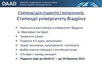 - підтримка контактів із колишніми стипендіатами DAAD (інформування, запрошення на зустрічі стипендіатів та інше);