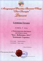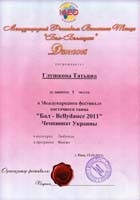 На запрошення Асоціації Східного Танцю у Міжнародному фестивалі «Бал-Bellydance 2011» та Чемпіонаті України в категорії Професіонали взяла участь Глушкова Тетяна, студентка 5-го курсу КУП НАН України (відділення магістратури). Початок змагань випав на 19 годину, а Тетяна Глушкова виконувала свій номер о 3.00 годині ночі.