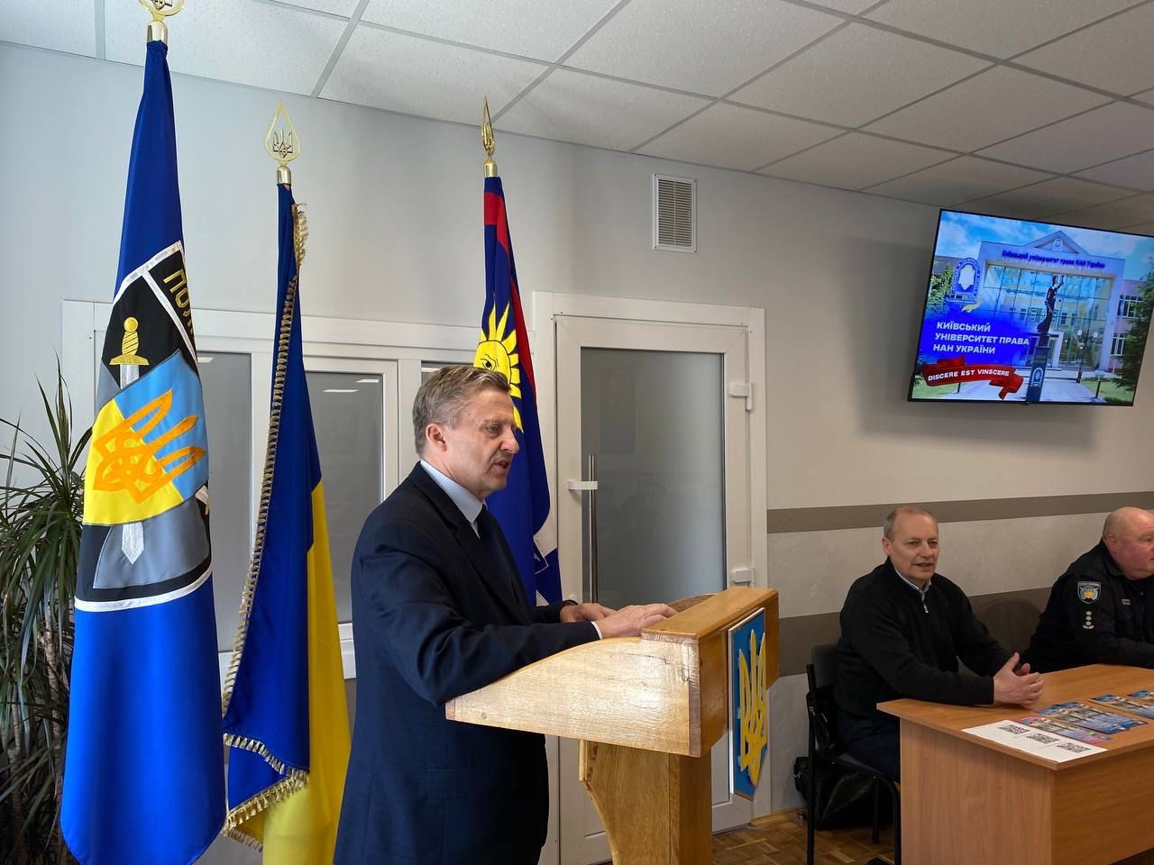 Перебуваючи з робочим візитом на Вінниччині, 04.04.2025 року, ректор Київського університету права НАН України Юрій Бощицький провів зустріч з керівництвом та слухачами Вінницького вищого професійного училища ДПО, яке здійснює підготовку, перепідготовку та підвищення кваліфікації працівників підрозділів Департаменту поліції охорони.
