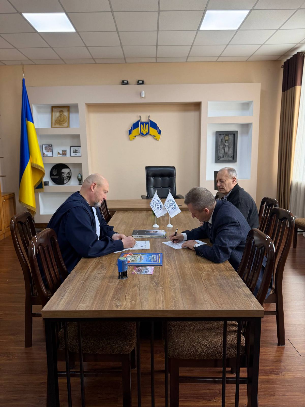 За результатами переговорів було підписано Меморандум про співпрацю між Київським університетом права НАН України та Апеляційним судом Вінницької області. Документ передбачає розвиток довгострокового партнерства у сферах освіти, науки та правозастосовної діяльності, зокрема організацію стажування та проходження практики студентами університету на базі суду, проведення спільних науково-практичних конференцій, круглих столів, семінарів, а також залучення практикуючих юристів до освітнього процесу.