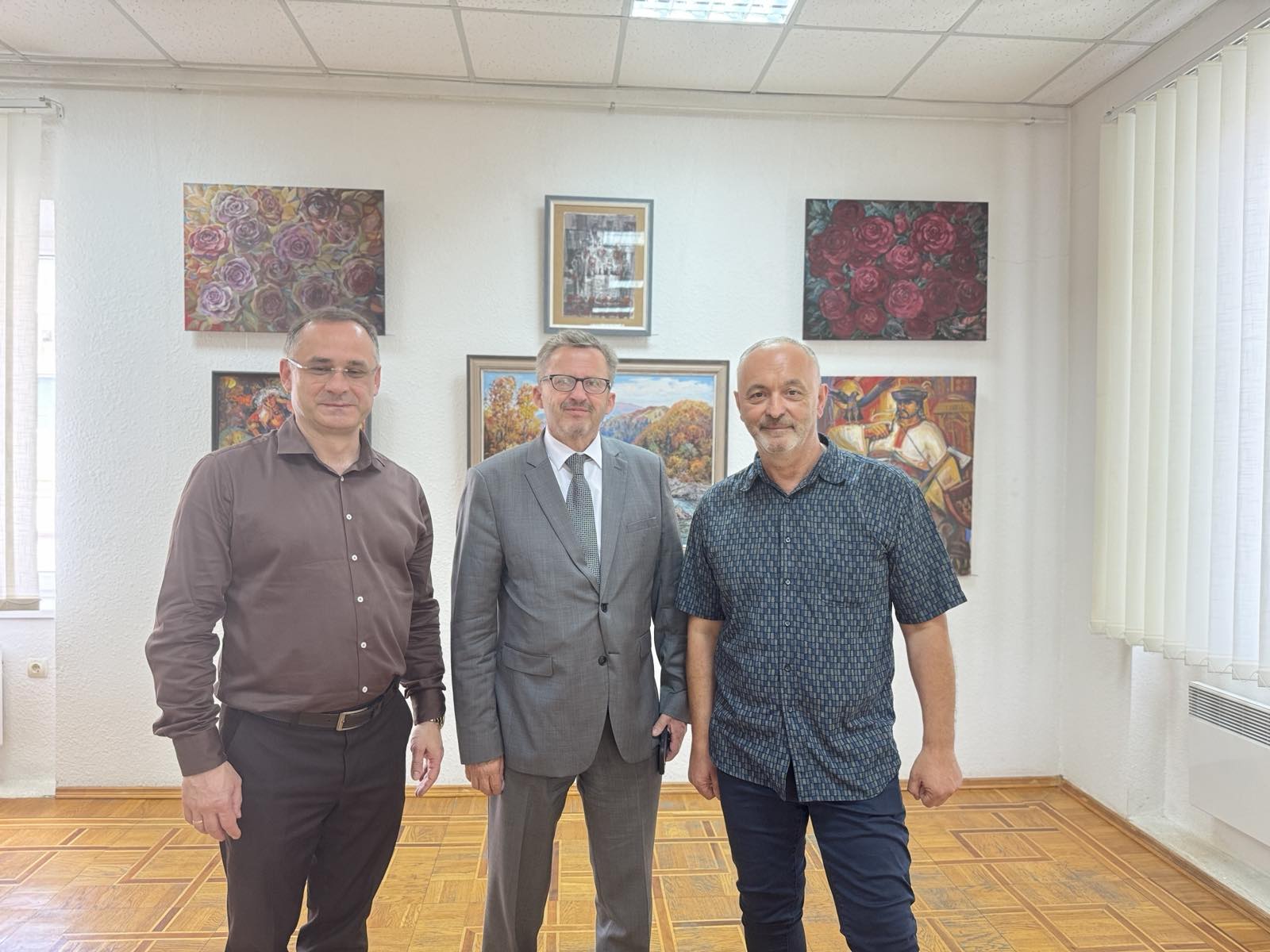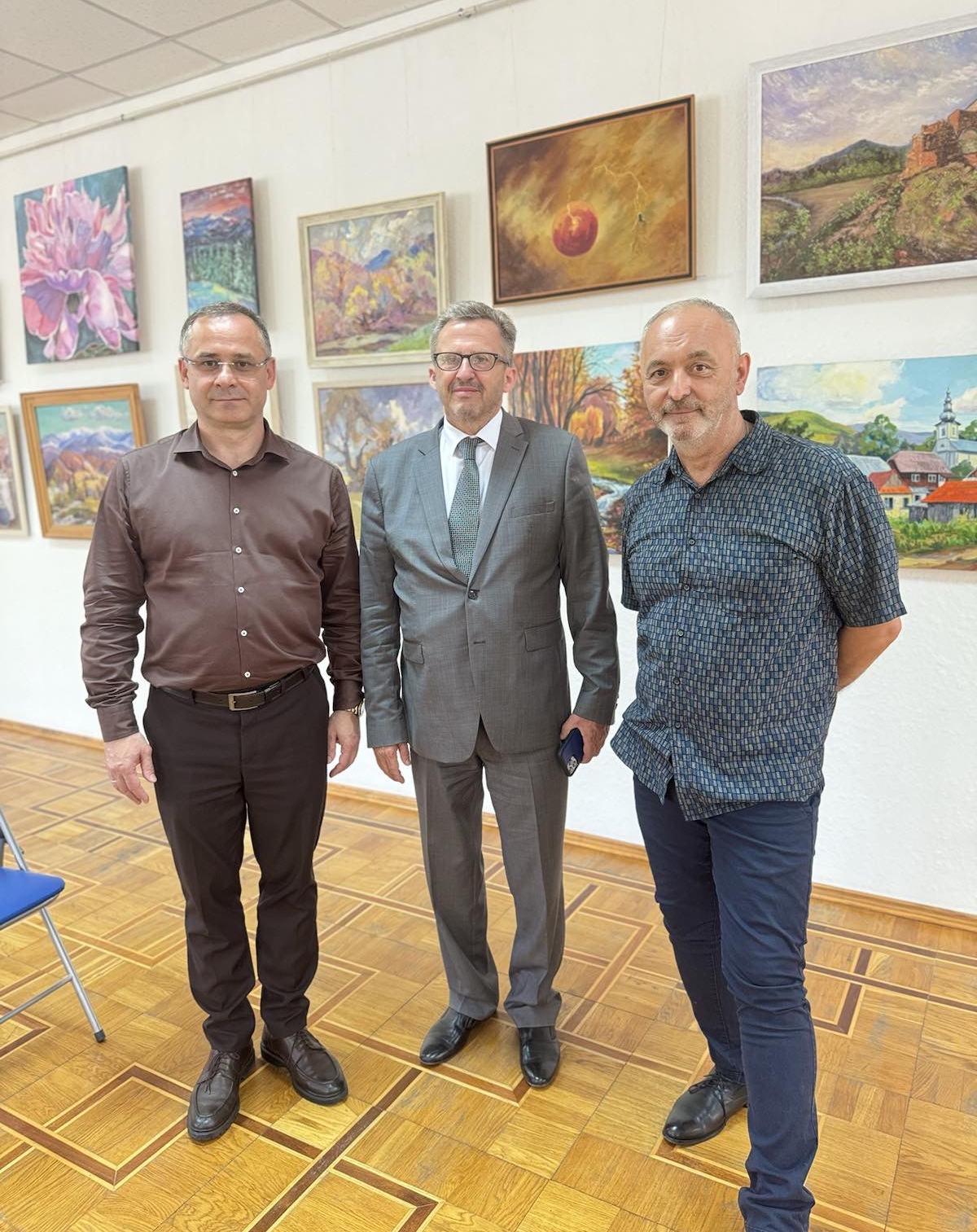 На запрошення керівника творчого об’єднання «Митець Верховини» Валерія Дьордяка ректор Юрій Бошицький та проректор Іван Кайло відвідали «Хустську міську картинну галерею» де відбулося відкриття звітної виставки, з метою запрошення митців до участі у виставках Київського університету права НАН України, які проходять в рамках багаторічного проєкту КУП НАНУ – «Інтелектуальна власність в Україні: перлини сучасного мистецтва для студентської молоді»!