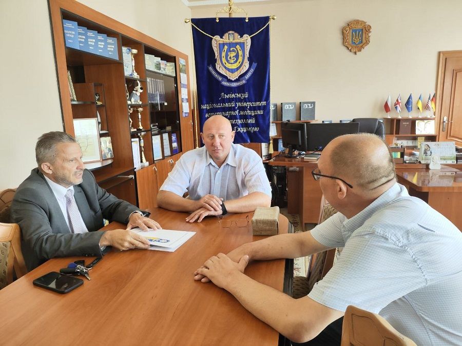 Під час робочого візиту ректора Київського університету права НАНУ Юрія Бошицького до філії нашого університету у Львові відбулася зустріч з ректором Львівського національного університету ветеринарної медицини та біотехнологій імені С.З. Ґжицького професором Іваном Парубчаком.