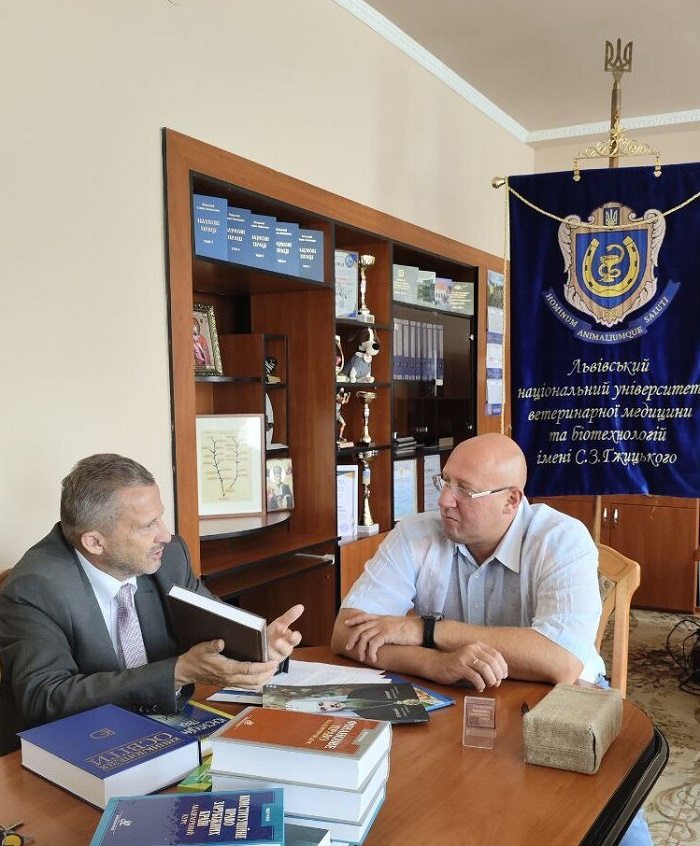 Іван Парубчак висловив глибоку вдячність за візит колеги до Львівського національного університету ветеринарної медицини та біотехнологій імені С.З. Ґжицького та озвучив готовність до взаємовигідної співпраці з Київським університетом права НАНУ.
