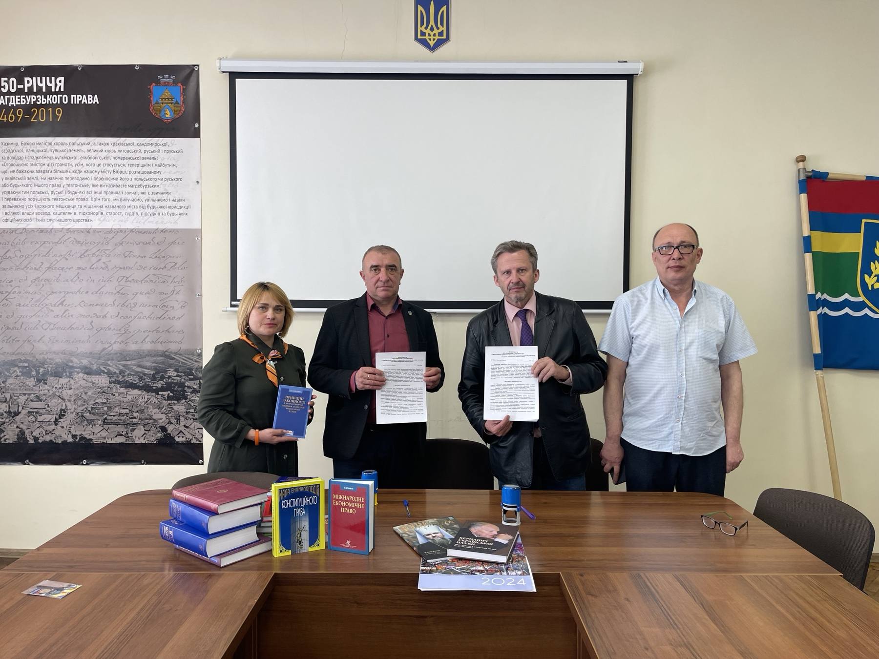 На завершення візиту, ректор Юрій Бошицький передав для бібліотек та шкіл Бібрської міської територіальної громади юридичну літературу в рамках нового спільного проєкту КУП НАНУ та столичним видавництвом «ЮРІНКОМІНТЕР». Даний проект має назву – «Популяризація юридичної освіти та професії в колах учнівської молоді України».