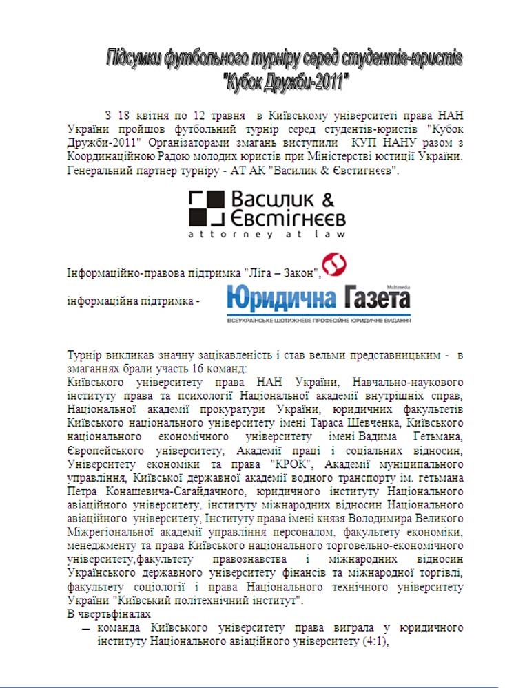 Підсумки футбольного турніру серед студентів-юристів “Кубок Дружби”