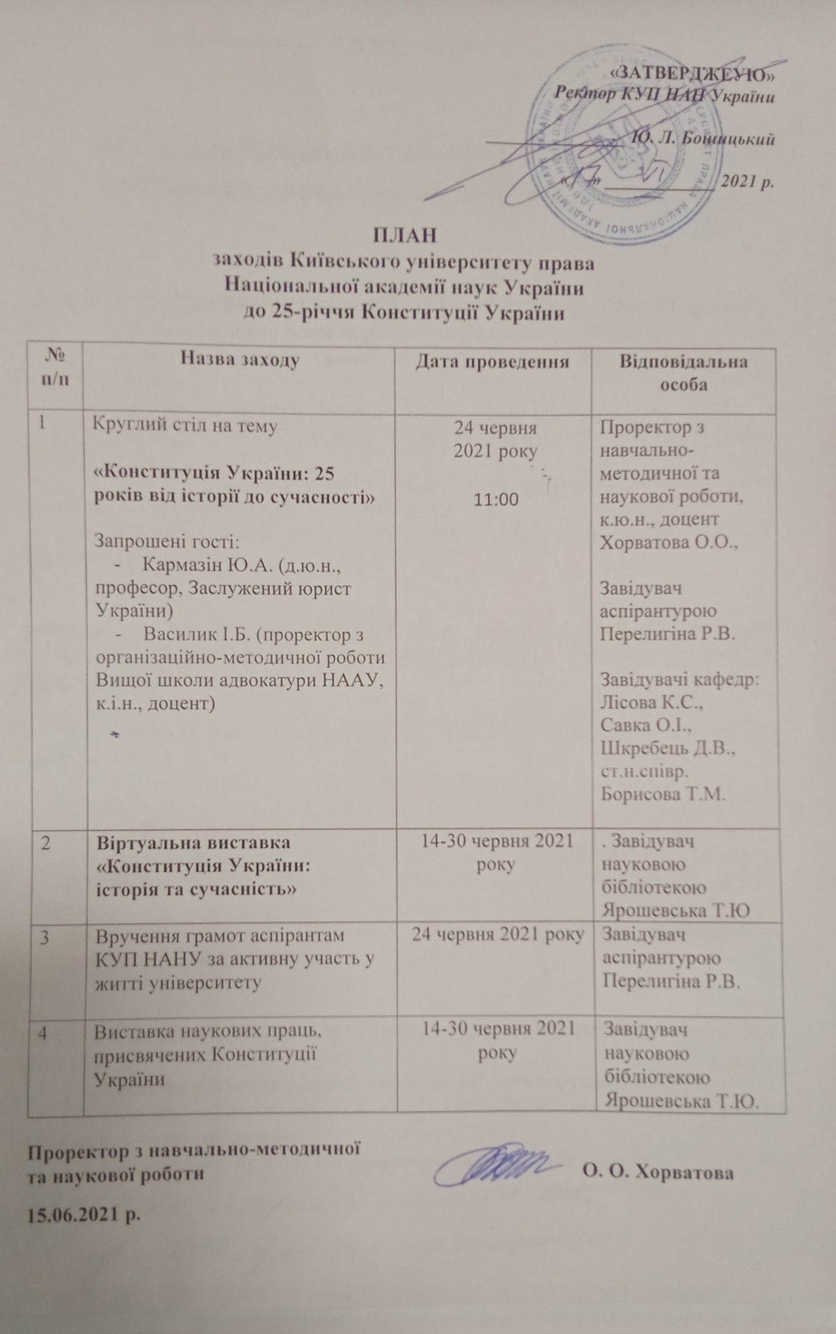 План заходів КУП НАНУ до 25-ти річчя Конституції України