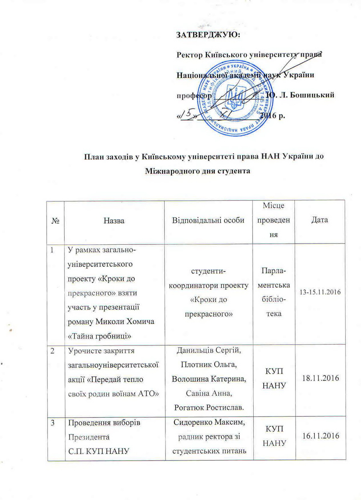 План заходів у Київському університеті права НАН України до Міжнародного Дня студента