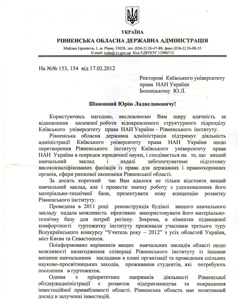 Поглиблення співпраці між Київським університетом права НАН України та Рівненською обласною державною адміністрацією