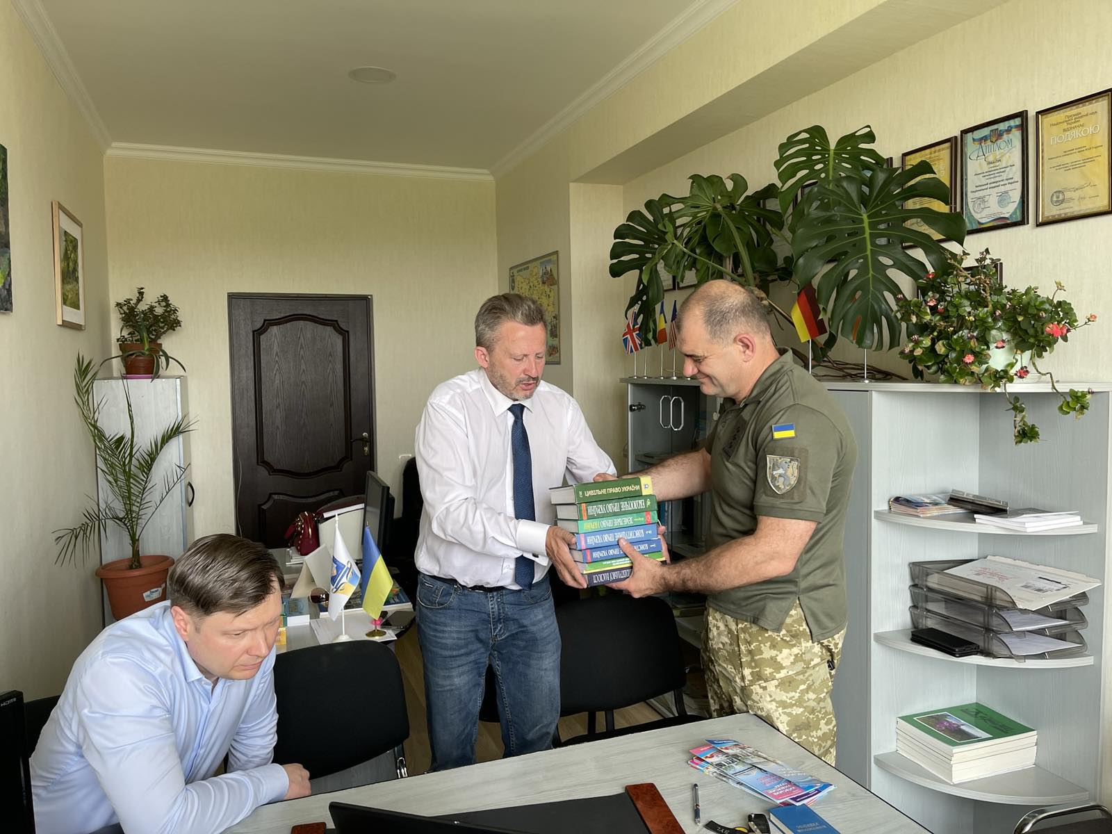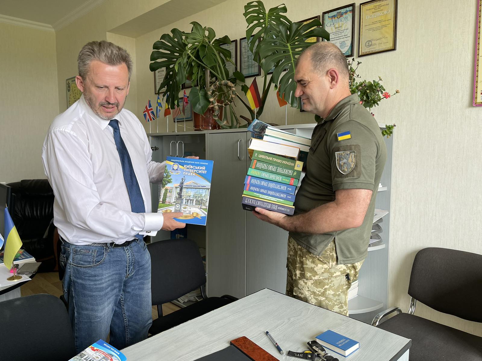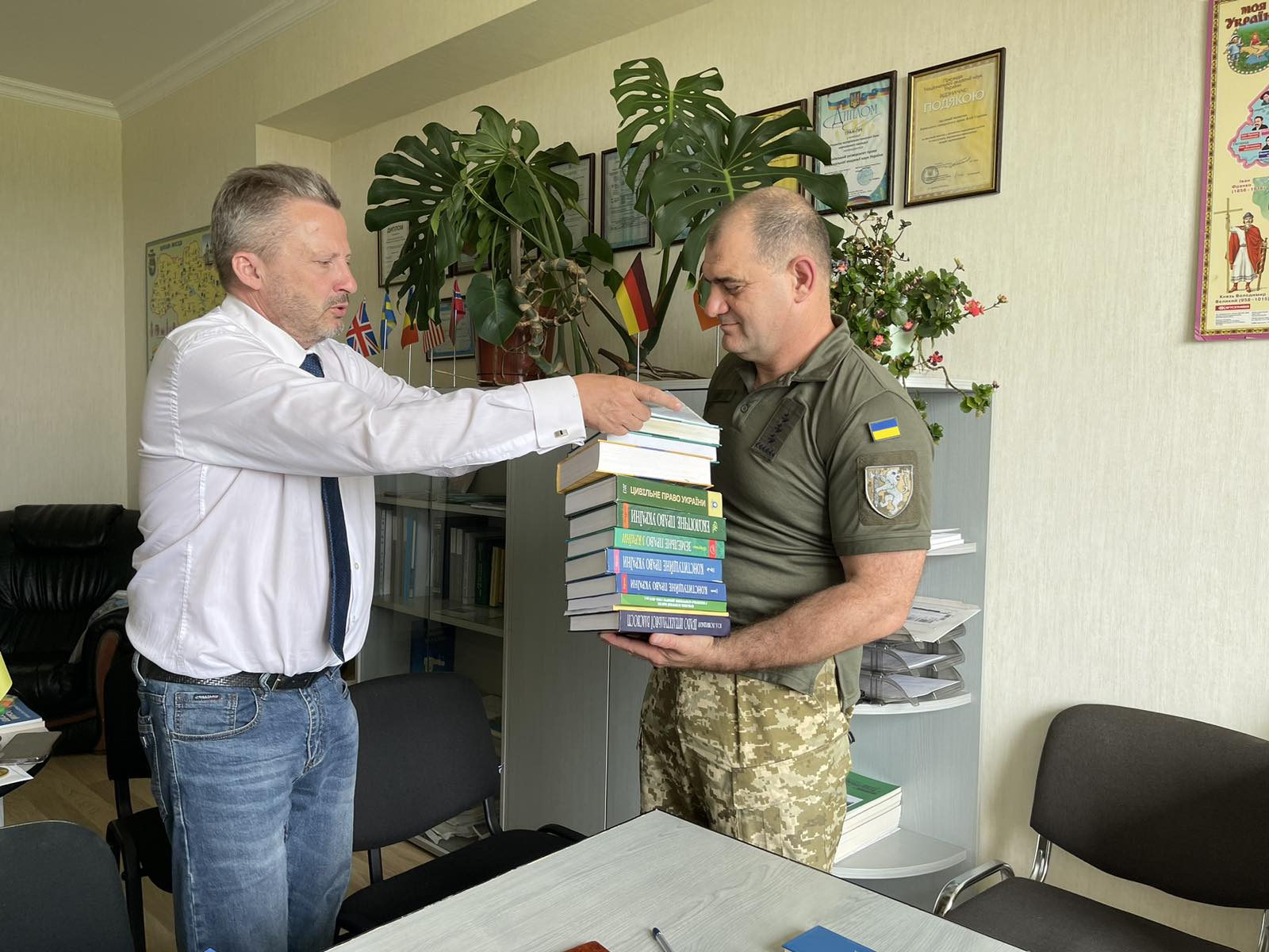 Також за традицією професор Бошицький передав полковнику Зимі юридичну літературу, видану університетом, для бібліотеки місцевого відділу служби Збройних Сил України.