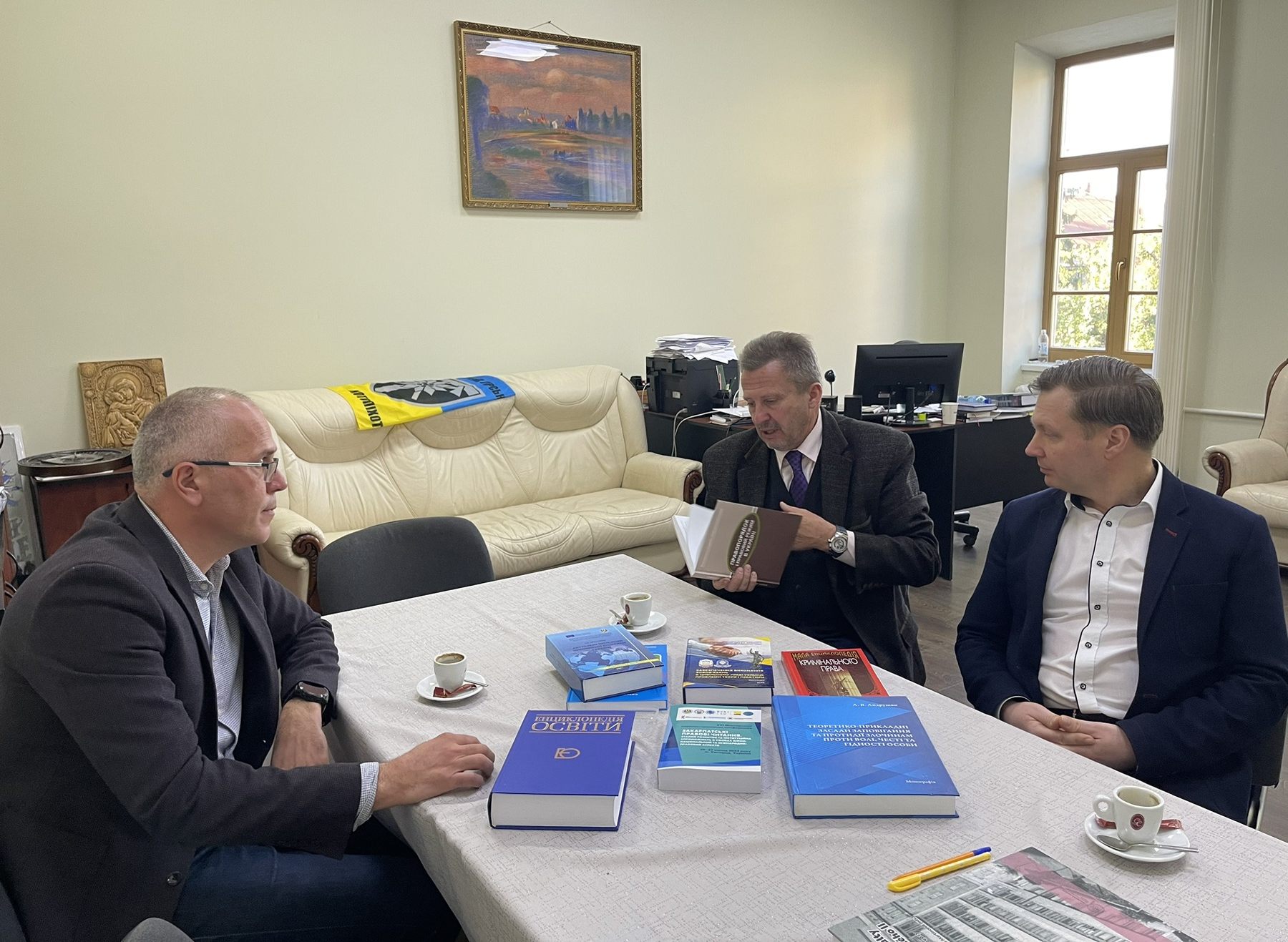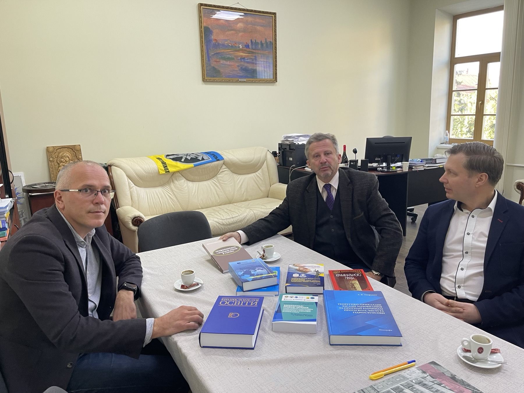 У рамках робочої поїздки до Науково-консультативного центру КУП НАНУ в м. Ужгород ректор проф. Юрій Бошицький і керівник Центру доц. Іван Ващинець провели зустріч з деканом Юридичного факультету УжНУ проф. Ярославом Лазуром. Під час зустрічі обговорювалося широке коло питань щодо поглиблення співробітництва між навчальними закладами. На реалізацію цілей та завдань академічної мобільності було досягнуто домовленості про подальший обмін практиками та досвідом в освітній сфері, включаючи викладання і стажування.