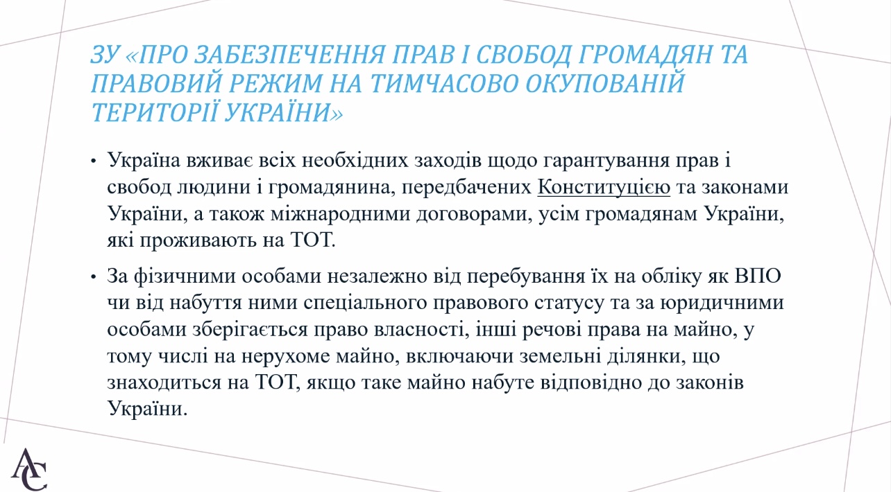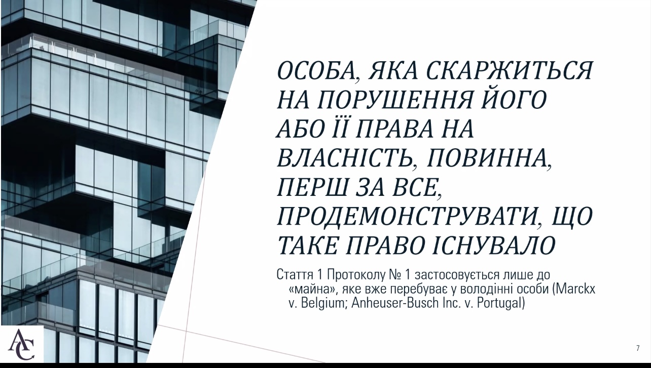 Кожна фізична або юридична особа має право мирно володіти своїм майном. Стаття 1 Протоколу № 1 Європейської Конвенції з прав людини закріплює наступне: «ніхто не може бути позбавлений своєї власності інакше як в інтересах суспільства і на умовах, передбачених законом і загальними принципами міжнародного права». А тому в умовах повномасштабної війни закономірно виникають питання щодо того як можливо захистити своє право власності? Які зобов’язання має держава та чи може вона відступити від своїх зобов’язань? Відповідям на численні запитання громадян України, які постраждали від злочинної агресії рф був присвячений семінар від Української Гельсінської спілки з прав людини на тему «Захист права власності в умовах міжнародного збройного конфлікту крізь стандарти ст. 1 Протоколу 1 ЄКПЛ». Підтримку заходу здійснено програмою USAID Ukraine «Права людини в дії».